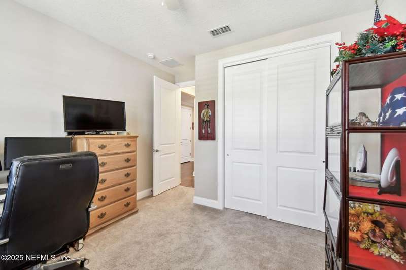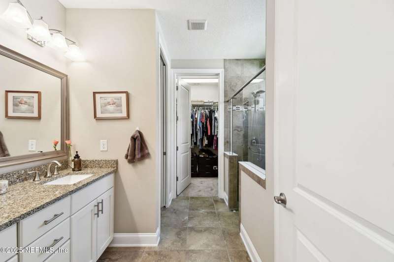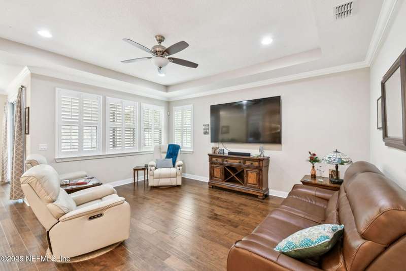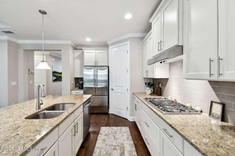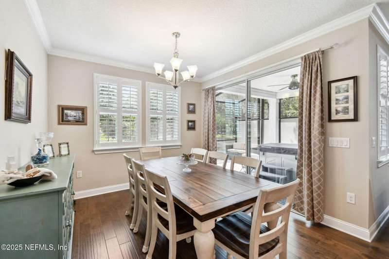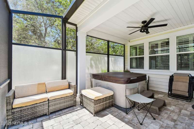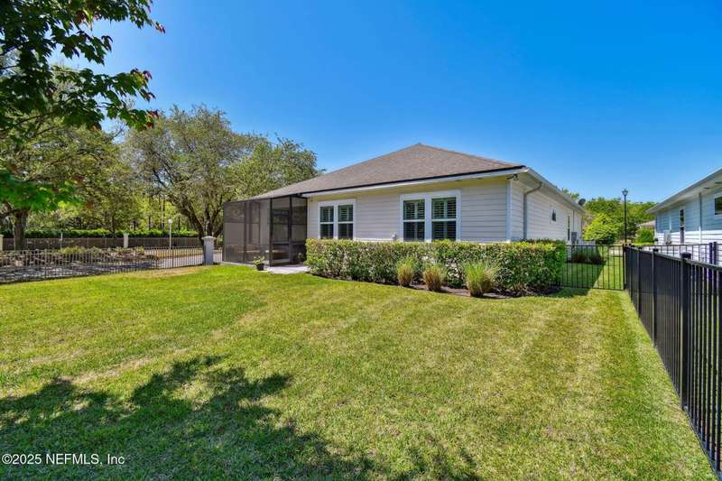 NO CDD FEE! LAWN MAINTENANCE INCLUDED! Located in the heart of St. Augustine's sought-after Legacy Trail in the World Golf Village, this beautifully landscaped golf course community offers convenience, charm, and comfort-just a short drive to beaches, shops, dining, and historic downtown.Nestled in a quiet street next to the Slammer & Squire golf course, this meticulously well-kept single-level home features wood floors in the main living areas, a gourmet kitchen with quartz countertops, GE Monogram appliances, gas cooktop, and 42'' maple cabinets with crown molding and high ceilings. Living room is also prewired for a sound system. Enjoy outdoor living with an extended screened-in patio-perfect for a hot tub-and a spacious yard with room for a pool.Additional features include pre-plumbing for a summer kitchen, natural gas, water softener, and laundry sink and the garage's electrical panel is wired for a natural gas generator.