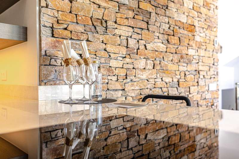 The villas with 197 sqm usage areas consist of 4 bedrooms, a living room, a kitchen, 4 bathrooms, and a balcony. The villas are equipped with an open-plan kitchen, laundry room, en-suite bathroom, storage room, barbeque, fireplace, solarium, smart home system, kitchen appliances, blinds, jacuzzi, shower cabin, and bathtub.