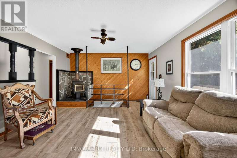 Nestled on 5.5 acres of countryside, this charming 3-bedroom home offers the perfect blend of rustic charm and modern convenience. Featuring a family sized eat in kitchen, formal dining room, spacious living room with the perfect window for your Christmas tree, a cozy family room, as well as an unfinished basement ready for your ideas. If you and your family love the outdoors you will enjoy the beautiful trails meandering throughout the property. Two log barns provide ample storage or can be repurposed for various uses, and a chicken coop allows you to embrace sustainable living. Lovingly cared for by a single owner, this home features significant upgrades: a durable metal roof(2016), upgraded windows and doors(2009), and an updated furnace and A/C(2014). A Generac system ensures uninterrupted power during outages. Professionally painted with new laminate flooring installed in September 2025. This country oasis is more than just a home; it's a lifestyle. Experience the tranquility of rural living with all the amenities you need to live comfortably in your own slice of paradise just 20 min west of the City. 24 hour irrevocable on all offers. (id:6509)