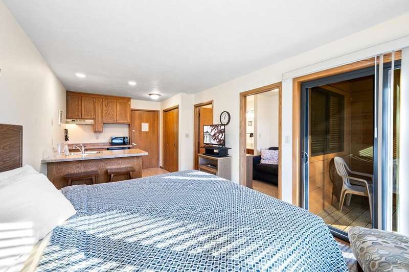 First-Floor Harbor Unit - This fully updated unit offers comfort and convenience with a king bed in the main area, a cozy alcove sitting area with loveseat, a full bath, and a well-appointed kitchenette with counter bar dining. Step out to your private covered patio, where you can relax and enjoy the serene view with direct access to a small outdoor space. Owners enjoy up to 28 days of personal use per year, while benefiting from strong rental income potential.