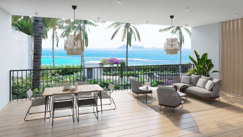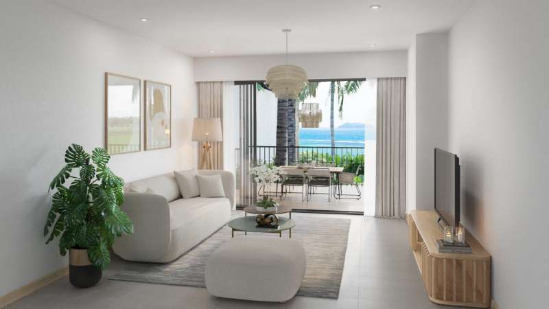 Located on the unspoiled northern coast of Mauritius, this elegant 3-bedroom apartment is part of the prestigious Kalodyne Bay beachfront residence. Offering breathtaking views of the Indian Ocean and the Northern Islands, the apartment combines contemporary design, premium comfort, and tropical serenity — just 10 minutes from the lively village of Grand Baie. Spacious and Bright Coastal Living With a total interior area of approximately 165 m², this apartment offers a generous, flowing layout designed for comfort and natural light. The open-concept living room, dining area, and kitchen extend seamlessly onto a 25 m² sea-facing terrace, creating an ideal setting for both relaxing and entertaining. The fully equipped modern kitchen, featuring SMEG appliances, a central island, and an open bar area, adds a touch of sophistication while maintaining a warm and social atmosphere. Key Features: 3 bedrooms, including 2 en-suite bathrooms Large master suite with dressing room and private access to terrace Bright, open-plan living and dining area with ocean views High-end kitchen with scullery and central island Laundry room, built-in storage Floor-to-ceiling glass doors for abundant natural light and ventilation Air conditioning in all bedrooms, ceiling fans in shared living spaces Private garden access for ground-floor units Residence Amenities: 25-meter infinity pool overlooking the ocean Fully equipped gym Landscaped green spaces and walking areas Private elevator access to each apartment Secure gated environment with panoramic views Close to international schools, public beaches, medical services, and restaurants Smart Investment & Residency Eligibility This property is available to non-citizens under the Smart City Scheme, offering: Freehold ownership Permanent residence permit for investments starting at USD 375,000 No wealth, inheritance, or capital gains tax Attractive flat income tax rate of 15% This 3-bedroom apartment at Kalodyne Bay is a rare opportunity to own a piece of paradise — where modern living meets oceanfront beauty in one of Mauritius’ most sought-after coastal locations.
