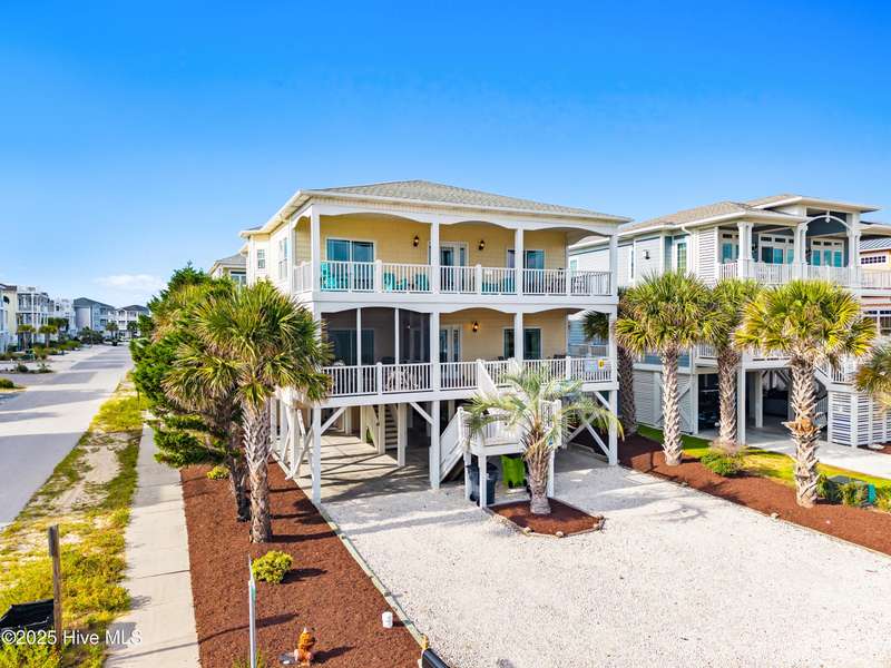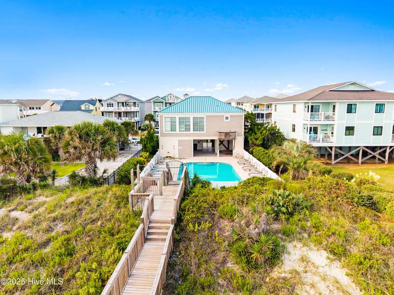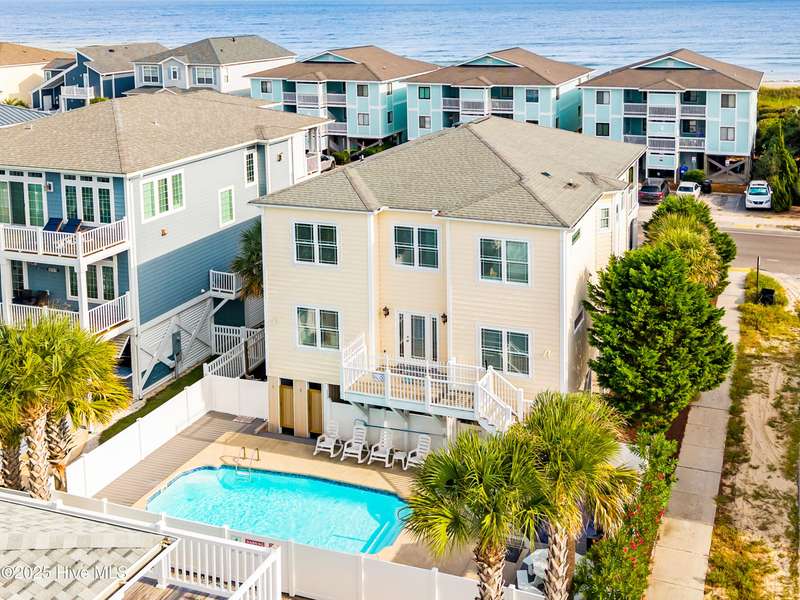 Welcome to Carolina Breeze! Located on the desirable West End of Ocean Isle Beach, this corner second-row property offers 6 bedrooms and 6 bathrooms with a wonderful reverse floor plan designed to capture magnificent ocean views and abundant natural light. Five bedrooms, accompanied by their own private bathroom, provide comfort, privacy and convenience for family and guests. The first level, off the spacious hallway, are four bedrooms, four bathrooms and a laundry area adjacent to the exterior staircase to the ground level. Two bedrooms on the top level, one includes a large full bath and a bunk room that enjoys a full bath or powder room off the hallway. The welcoming living area encompasses a large kitchen, and an expansive dining area with large table and bar leading to a door flowing on to the ocean-view wide deck. The kitchen is well-appointed with solid surface countertops, 2 dishwashers and 2 refrigerators: ideal for entertaining and large gatherings. Property features include a private swimming pool, elevator to all levels, multiple spacious decks, outside shower, an EV charger and direct beach access just steps away. This lovingly maintained home is part of a private community, the Resort at OIB, that enjoys amenities of both an ocean-front cabana with golf cart parking, clubhouse, pool, and private beach access. Plus, a day-dock on the sound for Resort members and their guests. With a strong rental history, this property presents an excellent investment opportunity as well as the perfect second home or primary residence. Combining this ideal corner location, exceptional design, and an expansive 2780 square feet, this beach house truly has it all! This home is fully furnished and equipped for turn-key availability. Ocean Isle is a popular Brunswick Island with easy access to North Myrtle