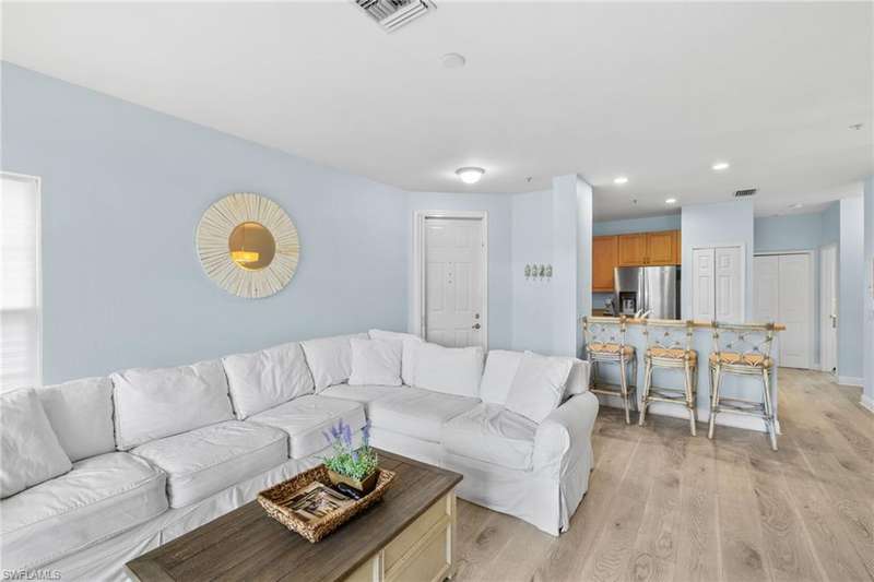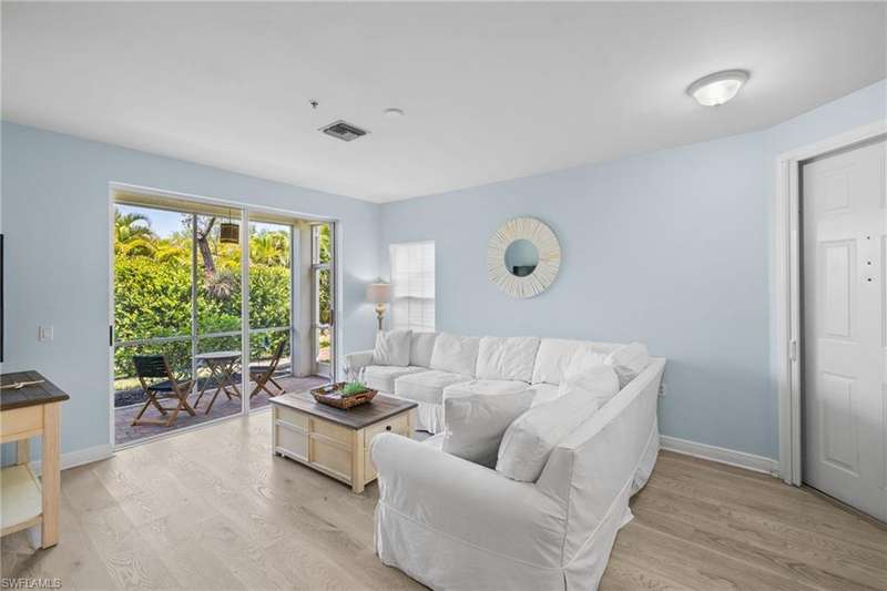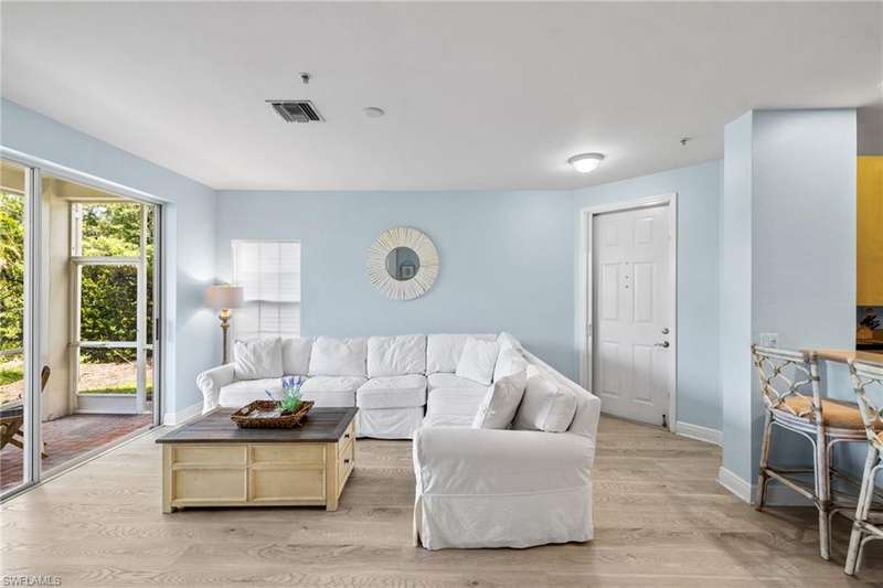 Welcome to this impeccably maintained former Azalea model, now offered turnkey. Thoughtfully upgraded and move-in ready, this home showcases solid-surface flooring throughout, plantation shutters, and stylish updates at every turn. The open-concept layout is perfect for relaxed everyday living and effortless entertaining set against a backdrop of lush tropical landscaping for exceptional privacy and tranquility. Tucked away in one of the most secluded settings within Sweetwater Bay, the screened lanai provides a peaceful retreat with no nearby roads or buildings in sight. This is a rare opportunity to own in one of North Naples most desirable communities just minutes from pristine beaches, upscale dining, and vibrant entertainment. Residents of Sterling Oaks enjoy a gated, resort-style lifestyle with optional access to championship tennis facilities, a full-service clubhouse, fitness center, and a Jr. Olympic sized pool with expansive sun deck and poolside bar. Surrounded by nature