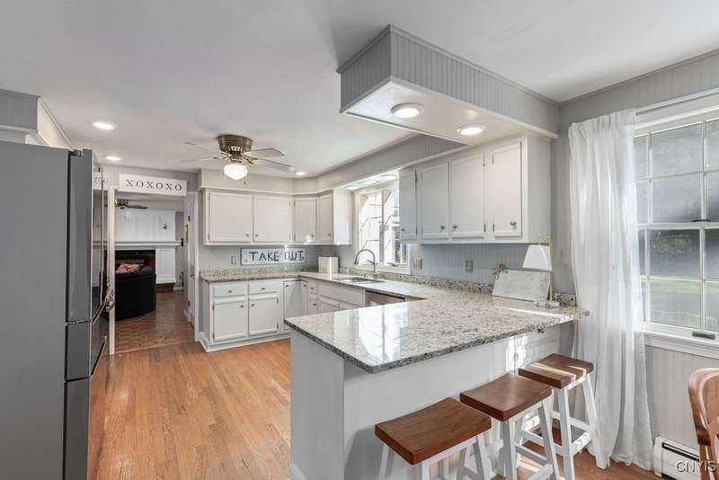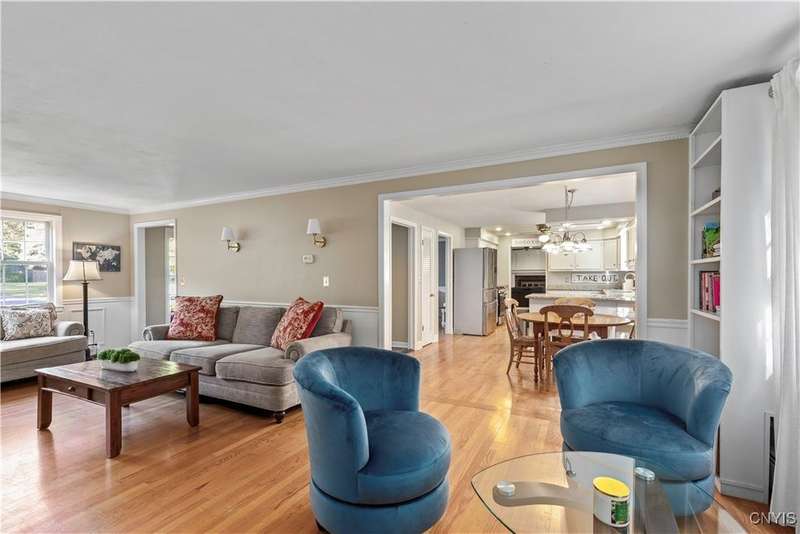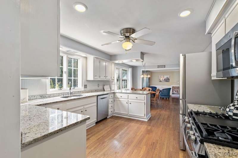 You'll fall in love with this charming colonial, perfectly situated in a location that can't be beat! Walk to nearby schools, parks and more.....all without paying village taxes. A beautiful paver walkway leads you to this spacious 4 bedroom, 2.5 bath home featuring hardwood floors on both levels, 2 wood burning fireplaces, gorgeous moldings and more. Enjoy cooking and entertaining in the eat-in kitchen with granite counters, stainless steel appliances and brand new gas stove and microwave. One side of the kitchen opens to a spacious, light filled living room with the first of 2 wood burning fireplaces, while the opposite side connects to a cozy family room featuring the second fireplace. Step from the family room into the sunny, 3 season/Florida room with access to the large patio and private, level backyard. Main floor laundry and half bath round out the first level. The second level offers 4 bedrooms, all with hardwood floors, along with a recently updated full bath featuring double sink vanity. Additionally, the primary bedroom offers its own private bath and 2 large closets. The lower level is finished with plenty of additional living space plus a large storage room. Award winning FM schools! Total square footage of 2413 does NOT include 600 square feet of additional finished space in lower level making total 3013 sq ft. Best and final offers due by Sunday 9/21 at 3pm