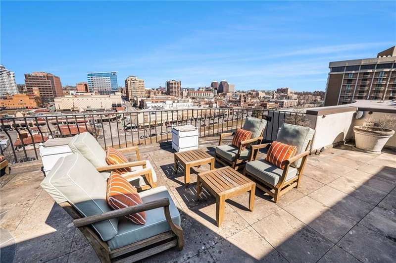Kansas Citys Premier Luxury Penthouse! Step into an unparalleled luxury lifestyle with this exquisite penthouse, offering 4,513 square feet of interior living space complemented by 2,814 square feet of private outdoor terracesall with breathtaking views of the Country Club Plaza. Thoughtfully designed for comfort and sophistication, this residence is a rare gem in the Kansas City market. The three-bedroom layout ensures privacy and elegance, with each bedroom featuring an en-suite bath. The west wing is dedicated to the primary suite, with a lavish bath featuring custom Dessin Fournir vanities, bespoke mirrors, and two separate toilet rooms. Adjacent to the suite is a stunning wood-paneled library/den, adorned with antique fluted pilasters, a marble-clad wood-burning fireplace (fitted for gas), and a sophisticated rosewood bar with a marble top, Guerin fixtures, a Sub-Zero wine fridge, and a concealed barware mirror. Over the fireplace, a custom Gregorious Pineo antique reproduction Chinese screen hides a flat-screen TV, blending old-world charm with modern convenience. The east wing houses two luxurious guest suites, both wrapped in Kneedler Fauchere hempcloth-covered walls and framed by floor-to-ceiling windows with sliding patio doors leading to a private terrace. The gourmet kitchen has a six-burner Wolf stove with pot filler, a custom range hood, Sub-Zero double refrigerators with additional pullout fridges and freezers, double Thermador ovens, and extensive storage, ensuring every culinary need is met. One of only 26 exclusive residences in the building, this penthouse offers unmatched amenities, including a fitness center, a heated outdoor pool with lounge seating, a party room, a 24-hour doorman, a guest suite, and two reserved garage parking spaces per unit. For those seeking the finest condo living in Kansas City, complete with expansive outdoor terraces and breathtaking Plaza views, this is truly a one-of-a-kind opportunity.