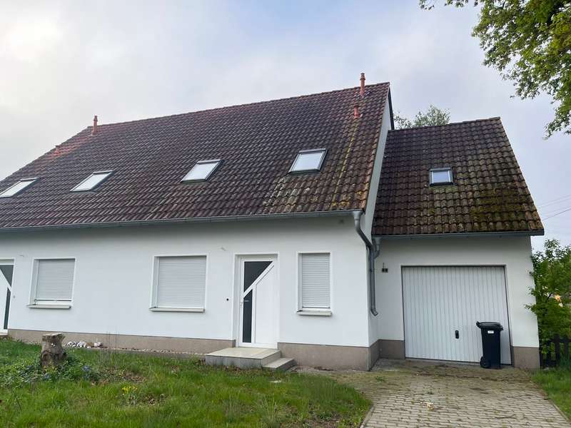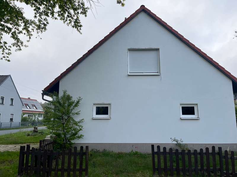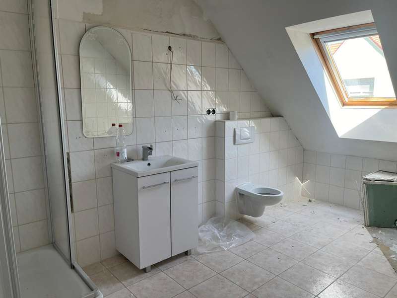 A partially renovated semi-detached house is for sale near the town of Lohsa. The house was built in 1998 on a plot of approx. 328 m² and has a living area of approx. 110 m². The interiors were gutted, the floors prepared for laying, the tiles in the bathrooms partially renewed and the façade repaired. The remaining renovations include laying the floor coverings, replacing the interior doors, painting and landscaping. Furthermore, a garage is available on the property. The house is available from 01.06.2024.