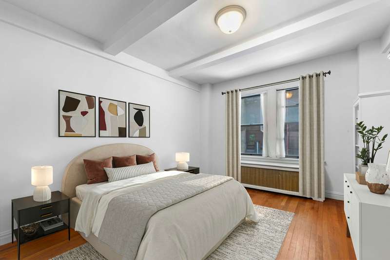 This spacious and charming one-bedroom home is filled with classic pre-war details and modern upgrades. Featuring high beamed ceilings, hardwood floors, and generous closet space, the apartment offers a warm and inviting atmosphere.