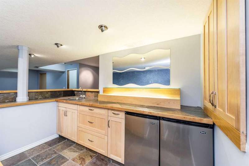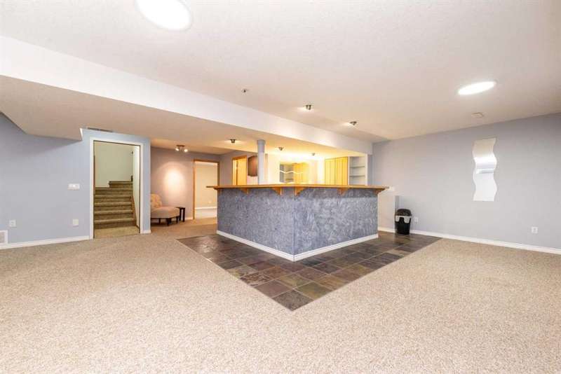 This meticulously maintained bungalow is located in the highly sought-after community of Douglasdale and offers over 2,500 sq. ft. of developed living space. With four generously sized bedrooms and three full bathrooms, this home provides ample space for family living. The double-attached garage adds both convenience and security. Upon entering, you'll be welcomed by a spacious living room and a formal dining area, perfect for entertaining. The rustic kitchen, featuring updated stainless steel appliances, seamlessly blends modern convenience with classic charm. The kitchen nook opens to the backyard, making it an ideal spot for meal prep while keeping an eye on children playing outdoors. The main floor hosts three bedrooms, including a primary bedroom with a full ensuite bathroom, and an additional full bathroom, enhancing the home's functionality. The fully finished lower level offers even more living space with a vast, open family room, an extra bedroom/office, a full bathroom, and a custom-built bar complete with two bar fridges—a perfect setup for entertaining guests. This home has newer double-pane vinyls, the roof is about 10 years old, and it has a heated, insulated attached double-car garage upgraded with a 220V electrical plugin. Situated in a desirable golf community, this property is close to two schools and offers easy access to major shops and services at South Trail Crossing. Conveniently located near Deerfoot Trail, Anderson Road, and Stoney Trail, this home combines peaceful suburban living with excellent connectivity to the rest of the city.
