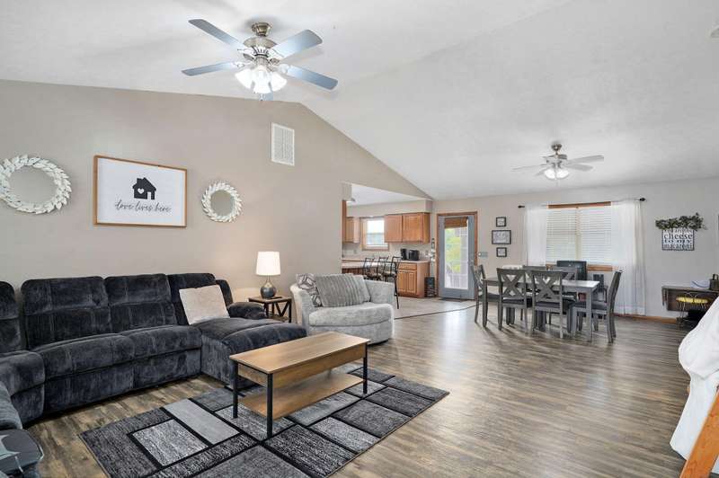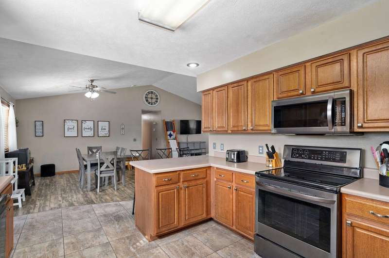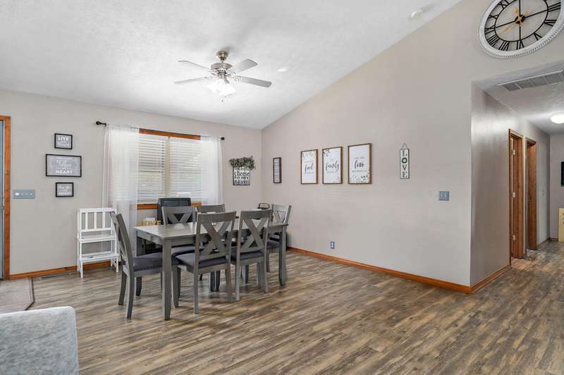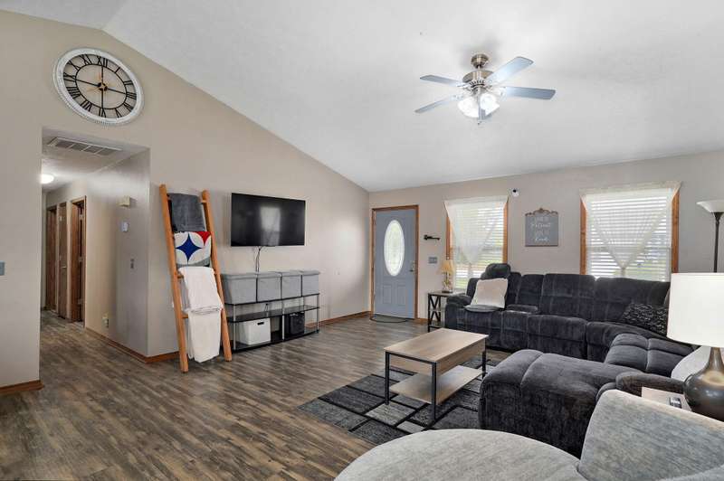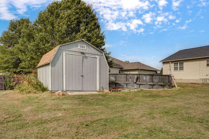 LOCATION, LOCATION, LOCATION! Beautiful brick & vinyl home on a large lot, located in a quiet area of newer homes! Open floor plan with 1536 sf, featuring 3 BRs, 2 baths with large rooms & bedrooms. The living room features a cathedral ceiling & is open to the kitchen & dining. Great kitchen with an eating bar, stainless steel appliances and a newer refrigerator. Laundry room has ample storage & a large pantry. The primary suite features a walk-in closet. Enjoy relaxing on the front porch & entertaining on the covered patio with dimmer lighting in the large fenced backyard with an above-ground pool. Heated 2 car garage & a large storage shed with electricity. HVAC system is just under 6 years old. No carpet! Tile & luxury vinyl plank flooring throughout. All kitchen appliances, washer & dryer are included. Underground utilities & fiber optic internet. Located in the award-winning Mt. Vernon school district. This hard-to-find lot measures 100x171, with no home behind it. Located on the east side of Mt. Vernon, just off of McVey St, with easy access to Springfield or Joplin. Short drive to Stockton or Table Rock Lakes & just over an hour to Branson.