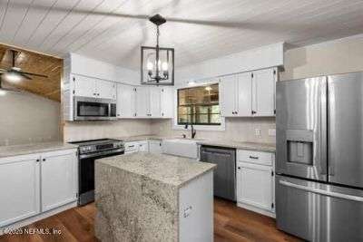 PRICE IMPROVEMENT!!!!!YOUR PRIVATE RETREAT AWAITS!Welcome to this newly remodeled 3-bedroom, 2 -bath home on a sprawling 1 acre lot. This stunning property sits on Black Creek Canal (10' deep) navigable to St Johns River. Features a brand-new roof, hvac, and an updated interior, offering a perfect blend of modern comfort and country living. The spacious layout is ideal for family life and entertaining, along with the lower level that is completely enclosed, makes it ideal area for the workman/woman enthusiast, giving an additional 1,700 sq ft. Don't miss your chance to own this turnkey gem!Key Features: New Roof, New A/C, Entire Exterior & Interior Paint. LVP Flooring through out the home, Tongue & Grove Vaulted Ceiling, Shiplap Accent Wall, Barn Door to Pantry, New Exterior Door, Quarts Countertops, Stainless Steel Appliances, New Vanities, New Electric Fireplace, New Underpinning, New Pump House and Garage Door