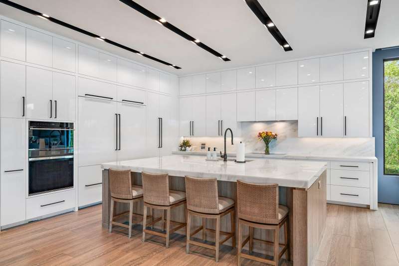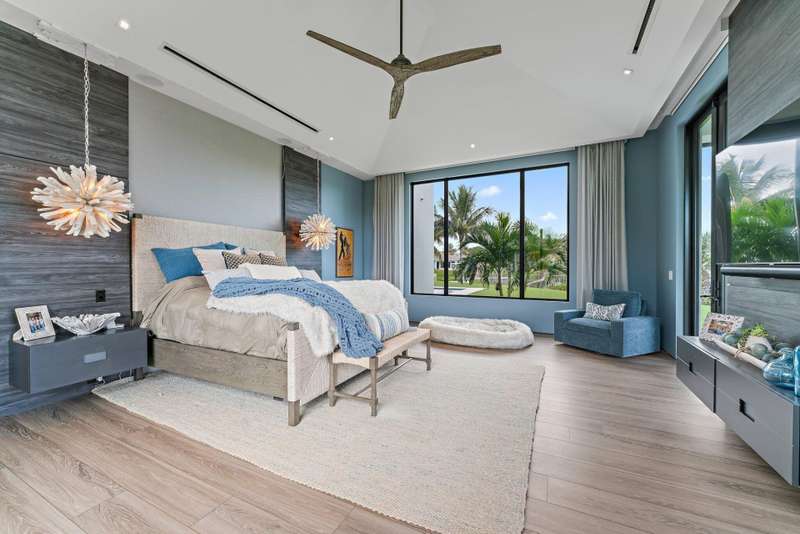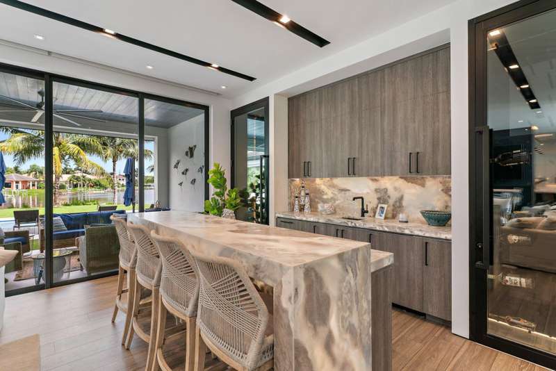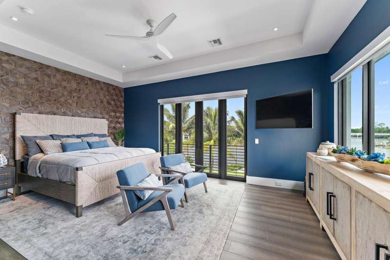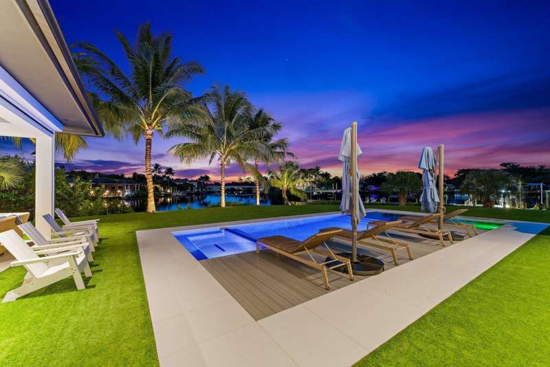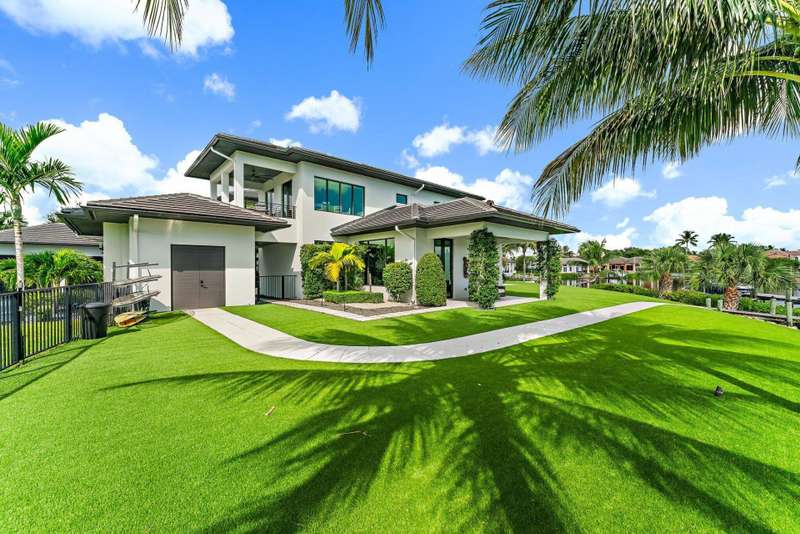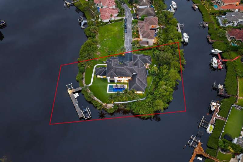Located on a peninsula lot of 1.33 acres with 500 feet of deep waterfrontage on three sides with no fixed bridges, this truly is one of the finest waterfront properties in our area. Custom built in 2021 by Ocean Blue Custom Homes, this signature estate in the luxury, gated community - The Islands of Jupiter, meets the demands of the most sophisticated clients. Floor to ceiling walls of glass brings the outside in, offering a light and bright texture to a modern coastal interior palette. Views to the pool with spa, summer kitchen with bar, dock with two lifts, professional landscaping, and expansive backyard with endless artificial turf; all define a dreamlike setting for a family retreat. The current owner made the following additions/upgrades within the past 12 months: