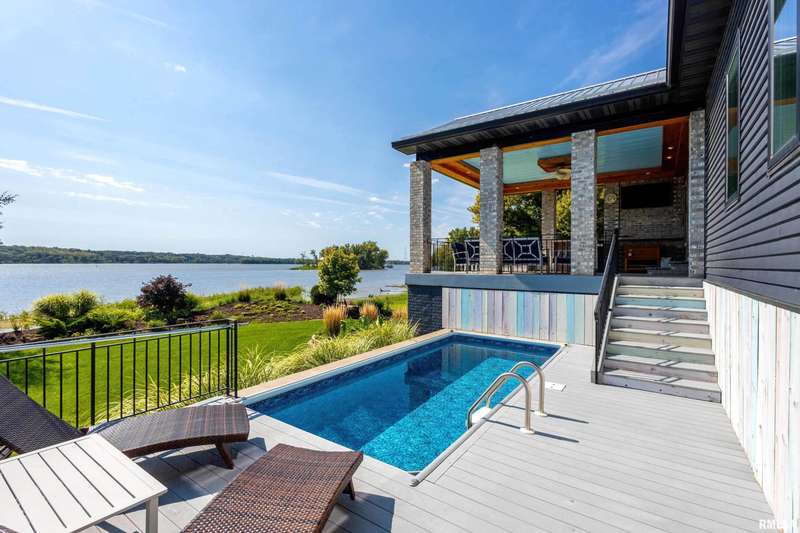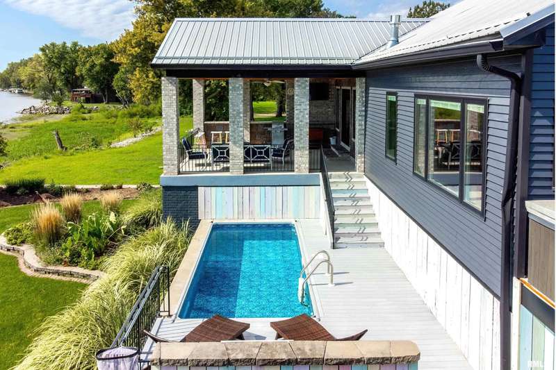 Experience breathtaking river views from the comfort of the covered outdoor deck, where you can unwind while overlooking the serene lap pool and beautifully landscaped and irrigated yard. This home boasts exceptional character, featuring vaulted ceilings, an airy, light-filled kitchen, and a spacious great room that perfectly frames the stunning scenery. The primary suite offers a unique touch with separate his-and-hers bathrooms, a large walk-in closet with access to the laundry room, and a private deck with a hot tub. The ground level includes a heated garage with space for 8 cars, a floor drain, workshop and a generous 10-car driveway. Built with durable steel siding and metal roof, and a robust 10-inch foundation. The property also includes an elevated mechanical room, above flood levels, for added protection. Make this a seasonal or year around retreat. Either way, it is ready for a new owner to enjoy.