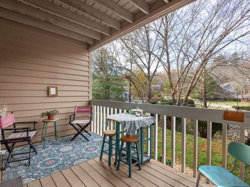 Welcome to easy, single-level living in the highly sought-after Laurel Creek community. This desirable end-unit condo offers extra windows that fill the home with natural light and highlight the fresh updates throughout. Featuring 2 bedrooms and 2 fully renovated bathrooms, this home includes a brand-new kitchen, updated flooring, and an inviting open floor plan that flows seamlessly to a screened porch overlooking the creek, creating a peaceful, park-like backdrop. Located just 10 minutes from d owntown and only minutes from Blue Ridge Parkway access, this home offers both convenience and natural beauty.Laurel Creek provides a wide range of amenities including tennis courts, pickleball, an in-ground pool, clubhouse, playground, and a dog park, all set within a beautifully maintained community designed for an active and enjoyable lifestyle.