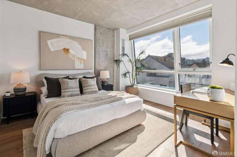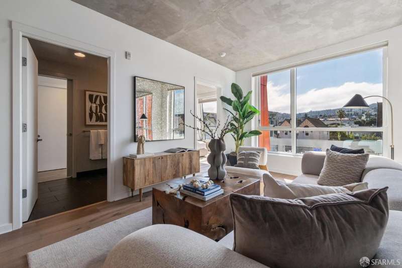Reduced! Ideally located in one of the Mission District's newest developments, Vida, this functional 1 bedroom/1 bathroom condominium boasts an abundance of light with views of Twin Peaks. Spanning 662 sq. ft. (per tax records), the home features a spacious open living/dining area with large west-facing windows. The kitchen includes a Bertazzoni stove and oven, Bosch dishwasher, Liebherr refrigerator, and quartz countertops with a tile backsplash. Ample closet storage is provided in the bedroom which has sufficient space for a desk and dresser. This fabulous home is completed with hardwood floors, in-unit washer/dryer, and an assigned storage cage. Vida is a full service building which includes a lobby attendant, 2 elevators, roof terrace with BBQ and fire pit, community room, gym, and bicycle parking. Conveniently situated just off Valenica St in the bustling Mission District, Vida is located just 3 blocks from the BART station, and a myriad of amazing restaurants including Foreign Cinema, the newly renovated Beretta, Lazy Bear, and many more. Famed Dolores Park is a short 10 minute walk away, and 101/280 freeway access is quick. The local cafes create a melting pot of urban workers in this burgeoning tech-forward neighborhood. 99 Walk Score, 98 Bike Score.