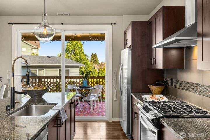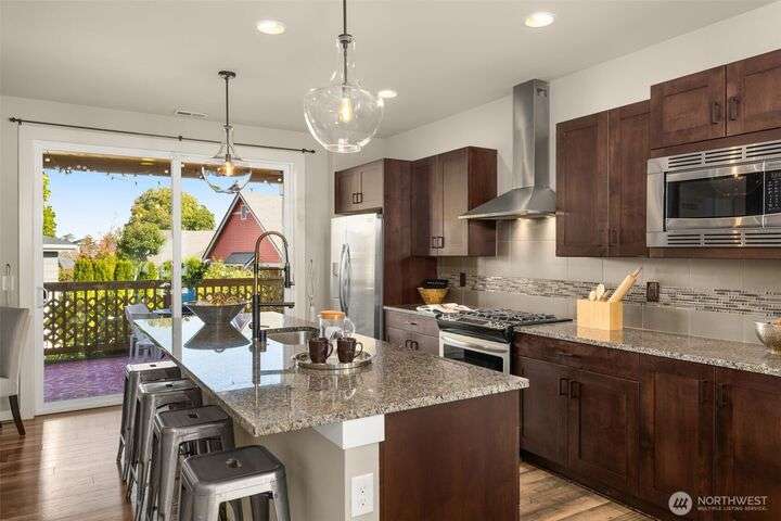 Welcome to West Seattle living at its finest. This beautiful 4-bedroom home is filled with designer touches and thoughtful details, offering style & function in every space. High ceilings & abundant natural light highlight the spacious main level, where a stunning kitchen w/ ample storage flows seamlessly to a large deck—perfect for entertaining or everyday living. Enjoy modern upgrades incl A/C, heat pump, & a cozy fireplace for cool evenings. Upstairs, retreat to a serene primary suite with generous closet space & a spa-like feel. The private yard is complete with raised beds, while the garage adds convenience and extra storage. With versatile spaces, smart storage, & timeless design, this home offers everything you’ve been searching for.