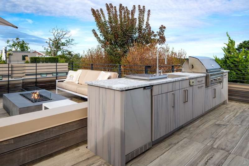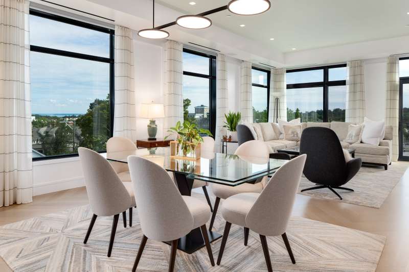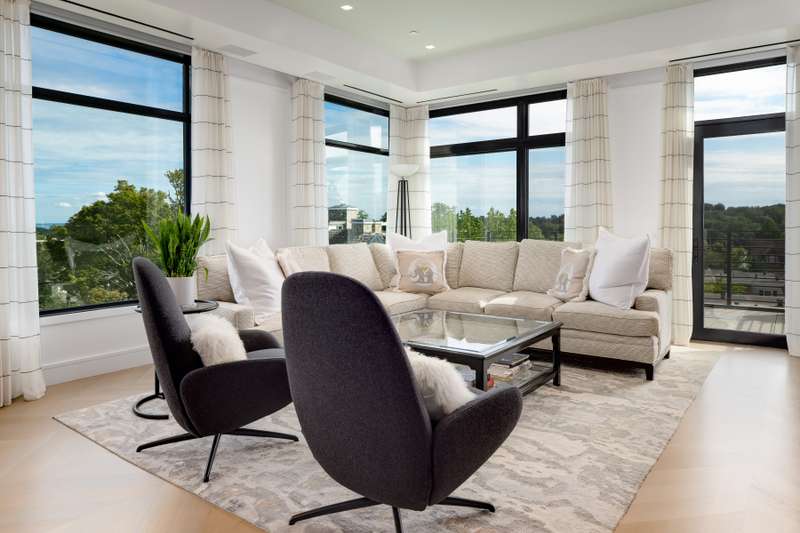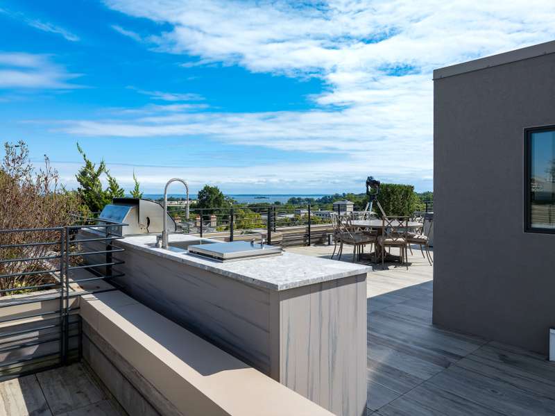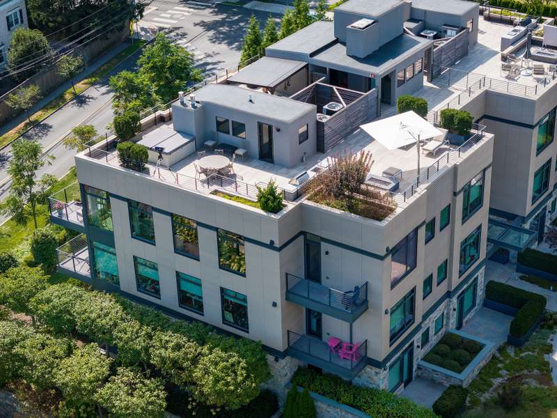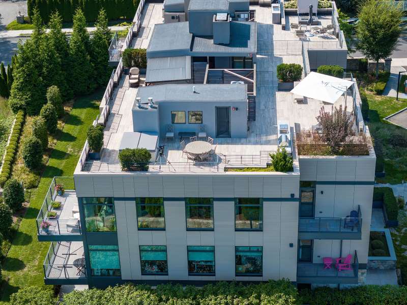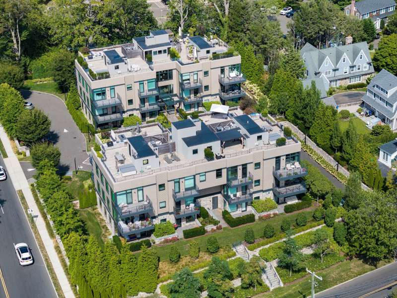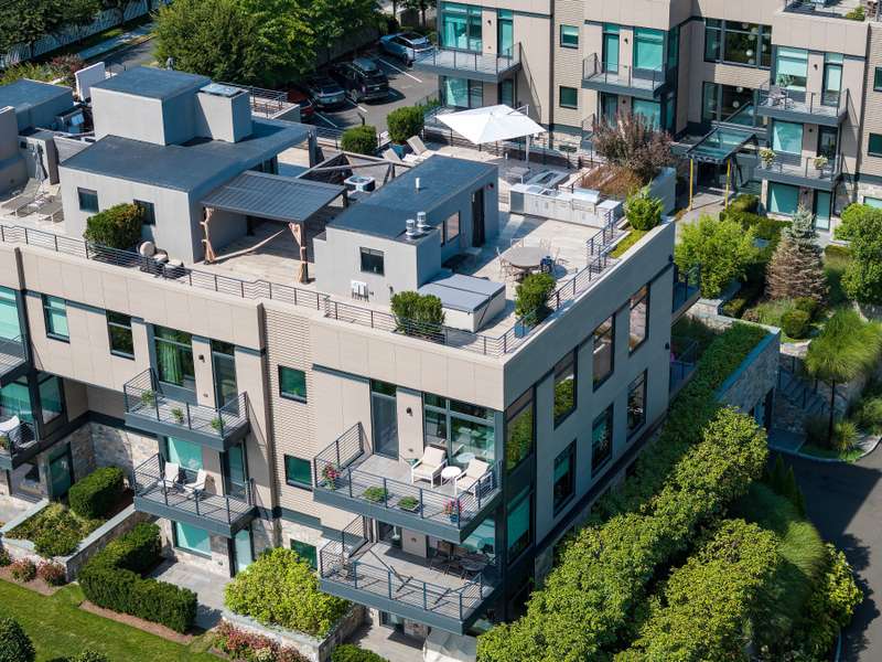 Ultra-luxurious three-bedroom Penthouse offers the best of in-town living with fabulous private rooftop terrace showcasing panoramic Sound views, hot tub, outdoor kitchen and sensational lounge areas with firepit. The equally stunning interior boasts herringbone wood floors, high ceilings, water views from most rooms and an open plan living room with deck, linear gas fireplace, bookcases, dining room and chef's kitchen with Gaggenau appliances, waterfall Quartzite island with seating. Features primary suite with deck, adjacent office, fitted walk-in closets, bath with radiant heated floors, spa tub, steam shower and two en-suite bedrooms, one with deck, powder and laundry rooms. One of only 4 PH Condos at The Modern with gym, garage parking, EV charger, storage unit and dog wash station