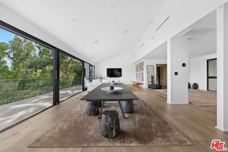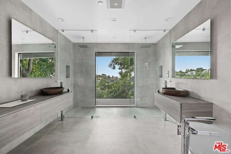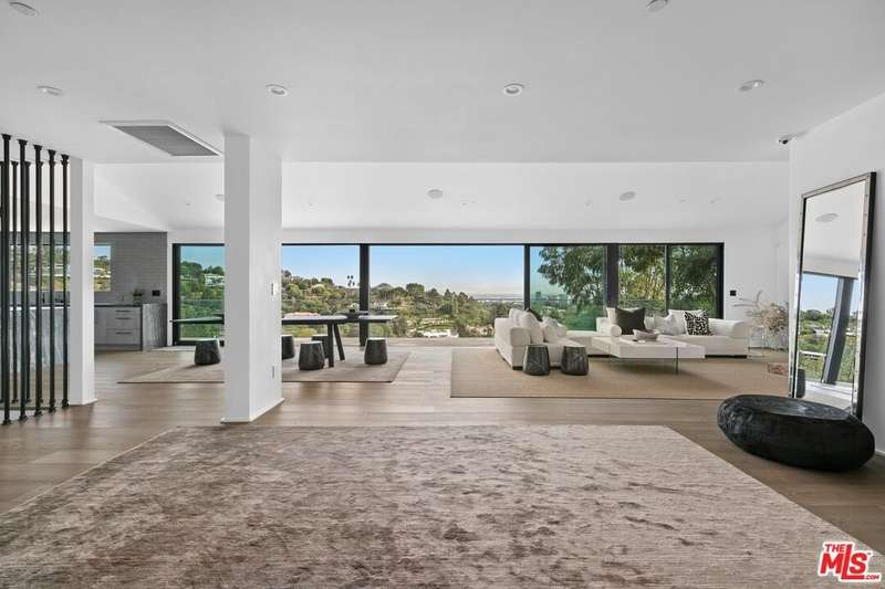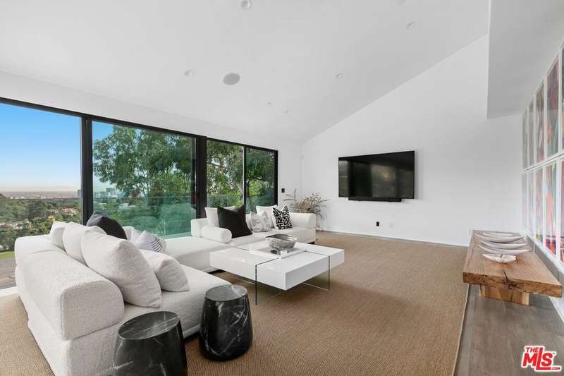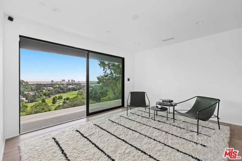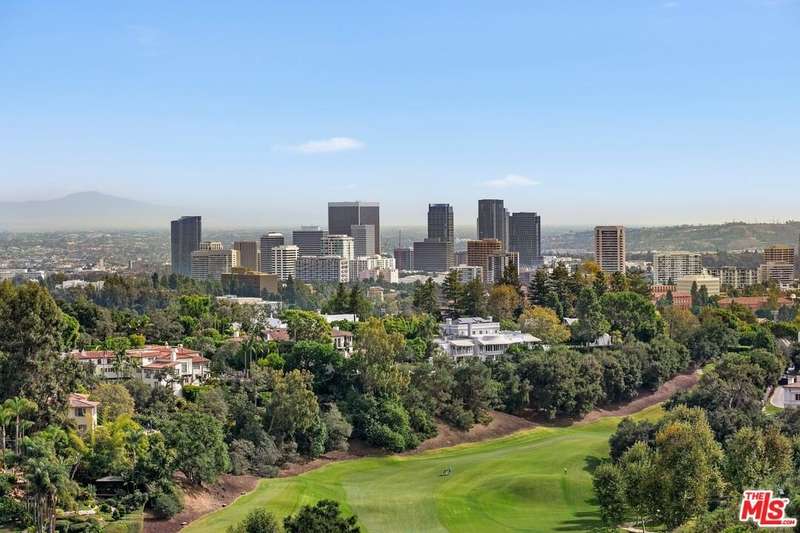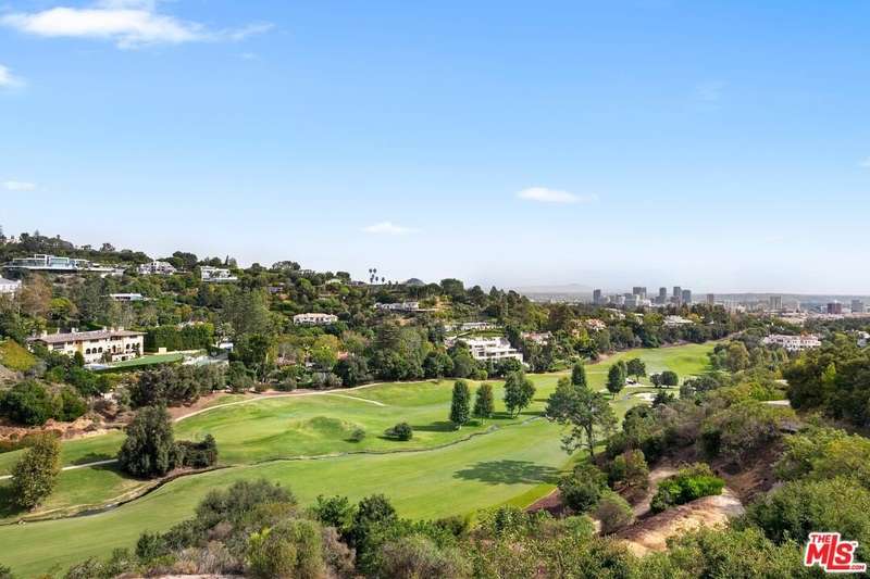 Located in one of the most scenic perches of Bel Air, nestled high above the prestigious Bel Air Country Club golf course, this four-bedroom, four-bathroom, three-level residence boasts premium finishes, magnificent views, and exceptional natural light. The main level features an expansive open-concept layout, seamlessly connecting the living, dining, and kitchen areas, all strategically positioned to maximize breathtaking views of the Bel Air hills, the Los Angeles skyline, and the pristinely manicured golf course. The kitchen, centered around a striking waterfall-edged island, stands as the heart of culinary sophistication, with modern design, luxe finishes, premium appliances, abundant natural light, and an exceptionally large walk-in pantryan ideal setting for hosting and entertaining. The second level is home to the primary suite, complete with a generously appointed walk-in closet and a spa-inspired bathroom featuring a free-standing tub, dual shower heads, panoramic views framed by an oversized window, and an adjoining outdoor terrace that creates a serene ambiance. Three additional bedrooms, each with its own en-suite bathroom, provide ample comfort for family or guests. The lowest level offers a grand wine cellar, a sauna, and a versatile fourth bedroom currently used as a recreation/game room. Expansive wraparound glass balconies further enhance the experience, seamlessly connecting the interior spaces to the awe-inspiring natural surroundings.