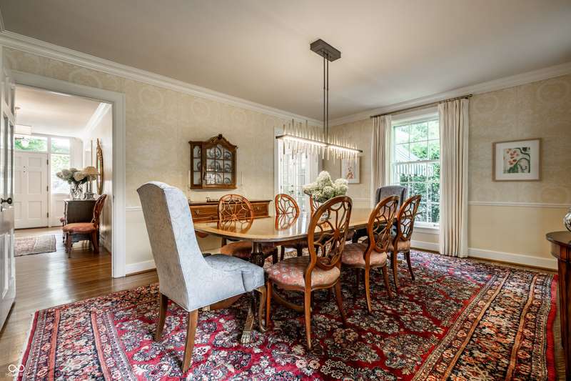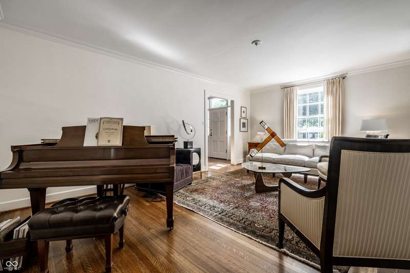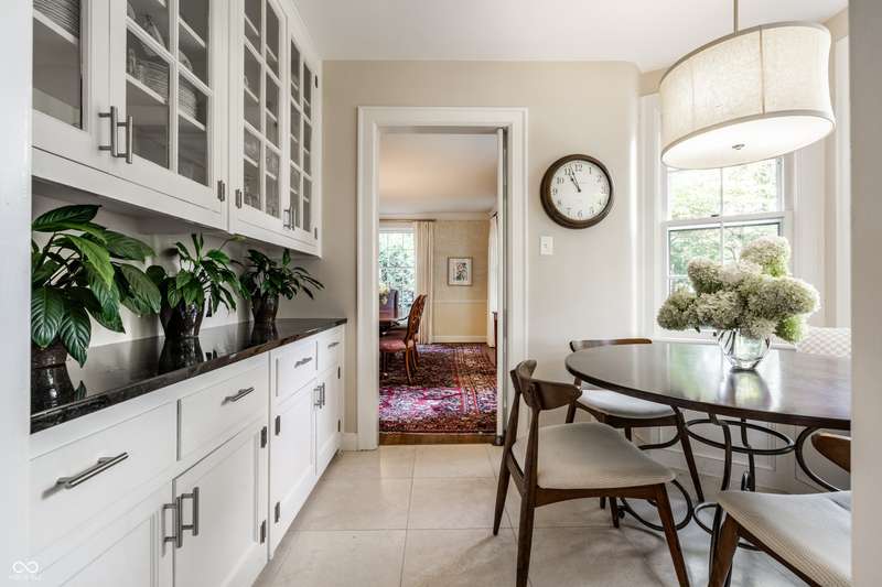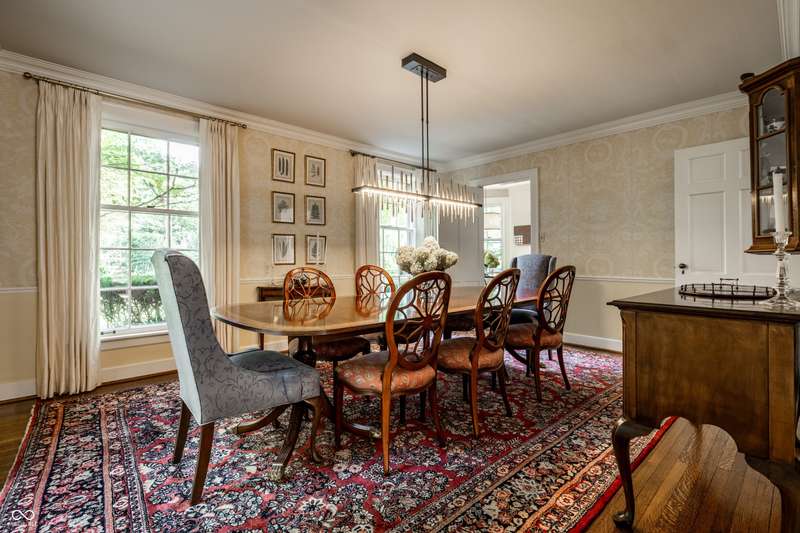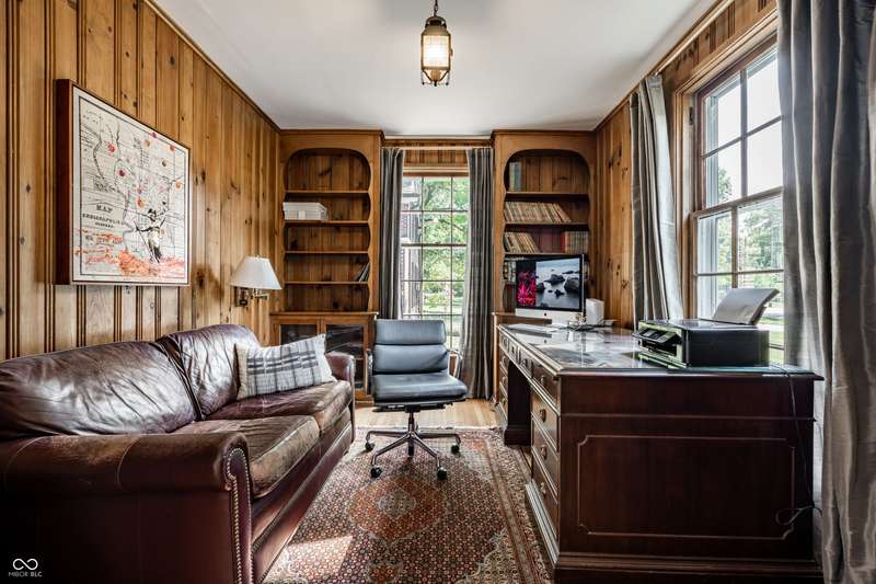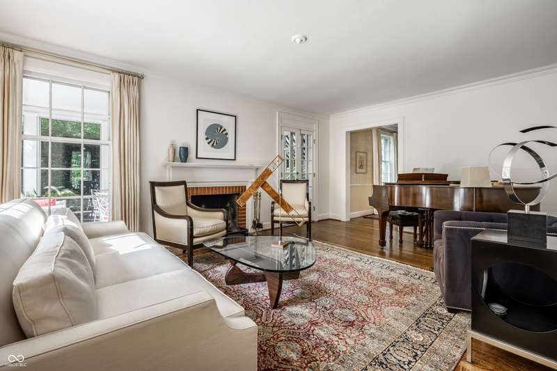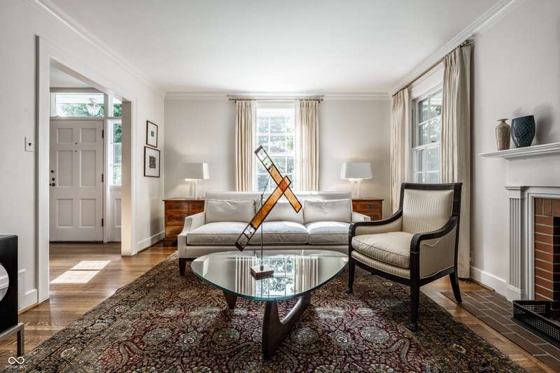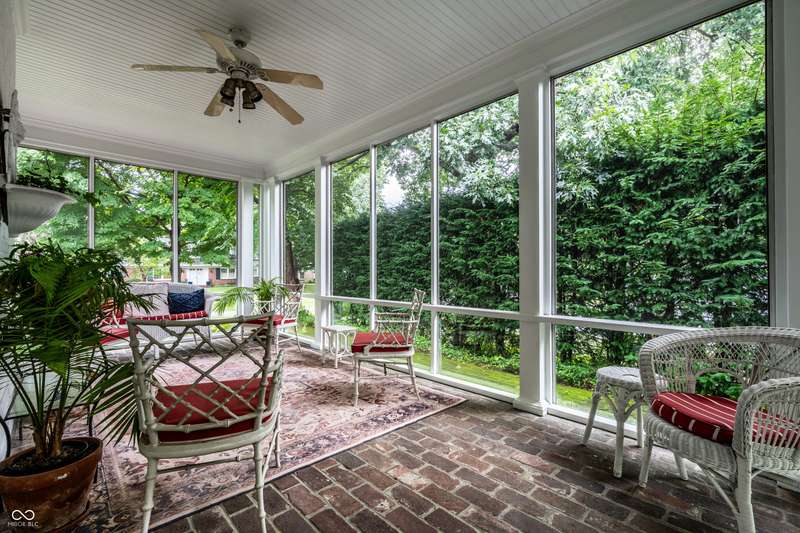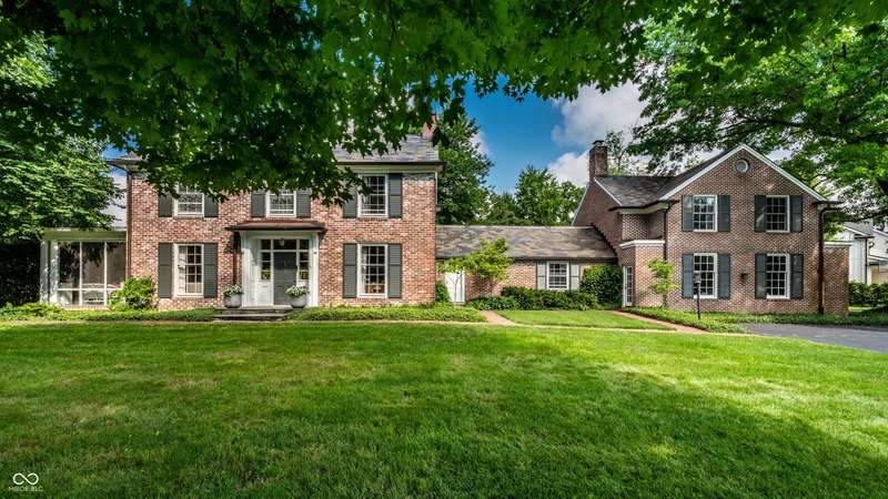 Welcome to Wellington Heights, in the heart of Meridian Hills-one of Indianapolis's most desirable neighborhoods. This all-brick home with slate roof combines timeless charm with enduring sophistication. Set on a full acre with stunning grounds, the property offers multiple outdoor living spaces, including a brick-and-slate patio, a side porch perfect for crisp fall evenings, and a greenhouse that blends seamlessly into the landscape. The expansive yard provides room for entertaining, gardening, or simply enjoying the quiet beauty of the setting. Inside, the traditional center-hall layout highlights quarter-sawn oak hardwood floors, detailed crown molding, six-panel doors, and floor-to-ceiling windows that fill the home with natural light. A main-level office overlooks the neighborhood, while the kitchen is designed for both form and function, featuring high-end appliances, custom cabinetry, and generous prep space. The primary suite includes an updated bath, balancing modern finishes with classic style. An updated laundry area adds convenience to everyday living. Originally built in 1939, the home was expanded in 1997 to include a spacious family room, two additional bedrooms, and a 3+ car garage-providing plenty of space for today's lifestyle. Just beyond your doorstep, enjoy a short walk to Holliday Park, with miles of wooded trails, gardens, and year-round programming. Or stroll to Meridian Hills Country Club, where golf, tennis, swimming, and social events create a vibrant community atmosphere. An exceptional opportunity to own a home of quality and character in one of Indianapolis's most sought-after locations.