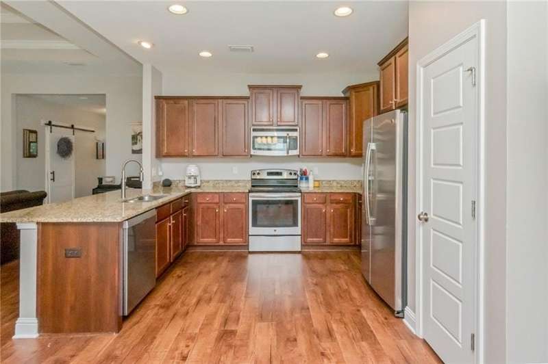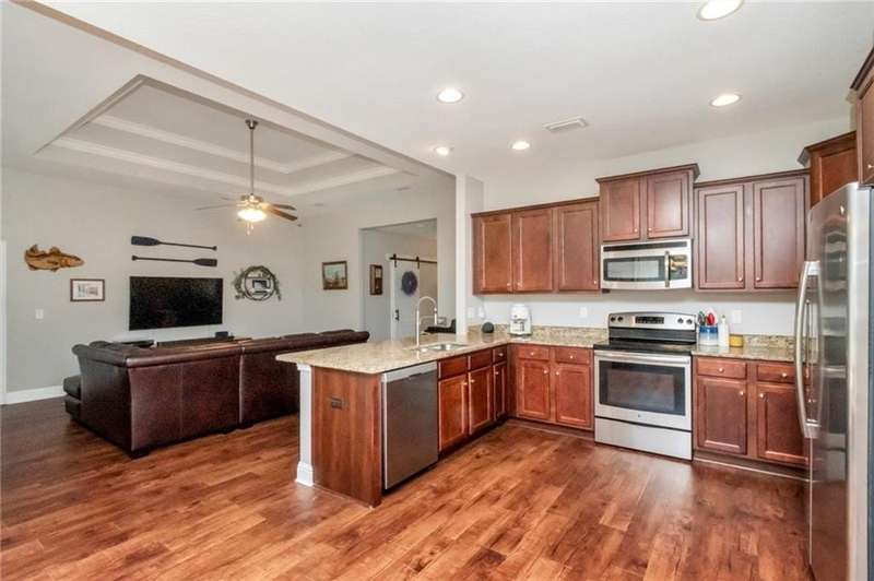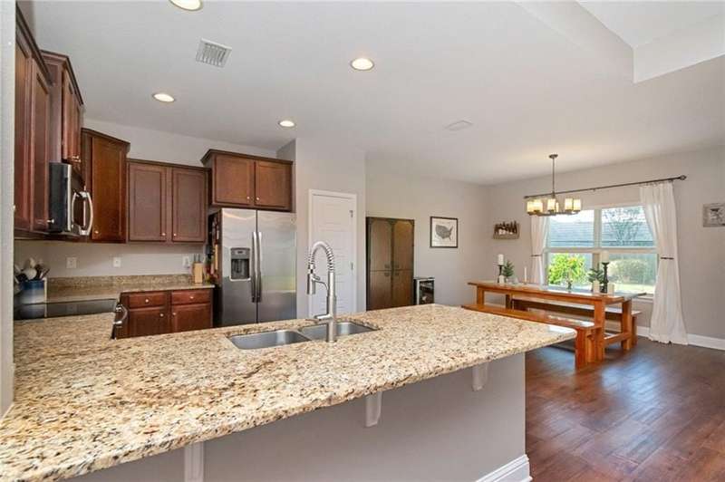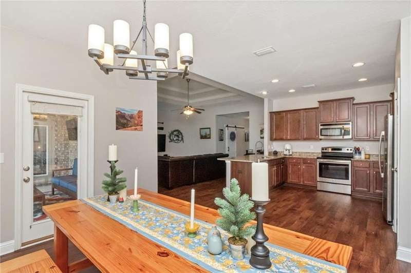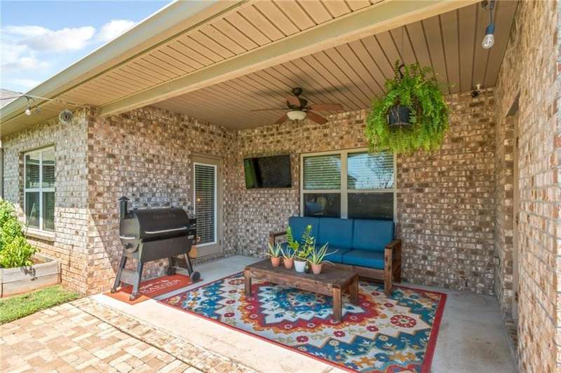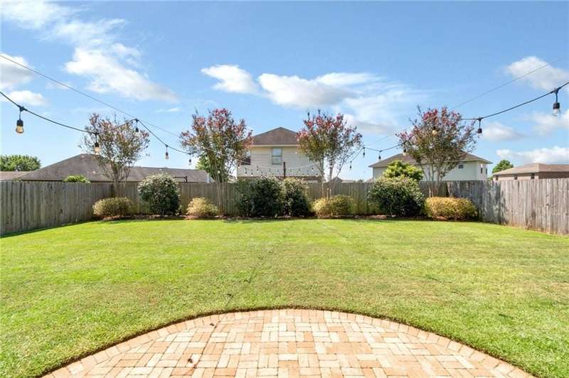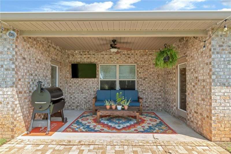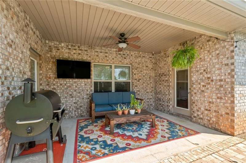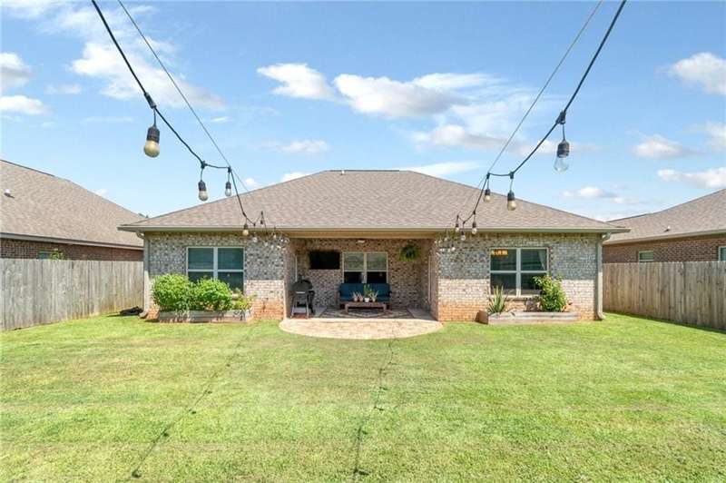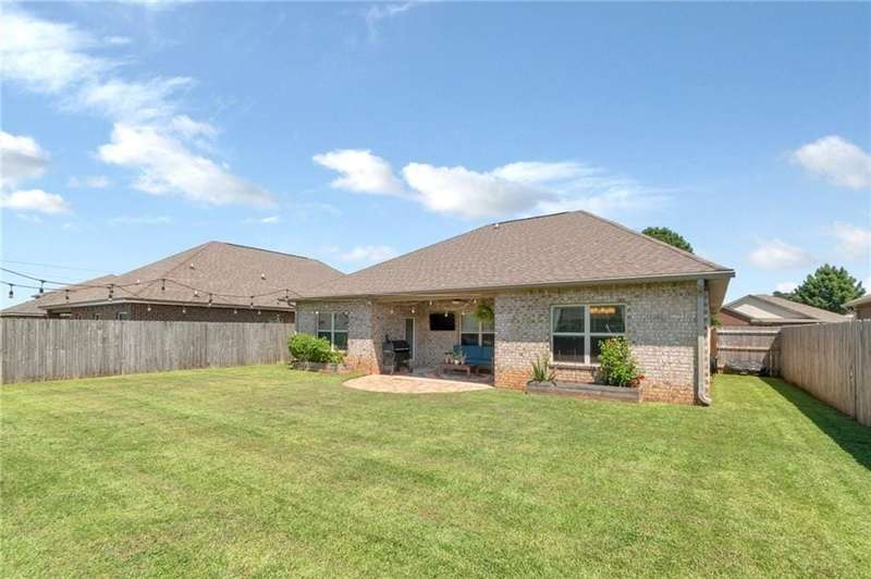 BACK ON MARKET DUE TO NO FAULT OF THE SELLER, BUYERS FINANCING FELL THRU! Welcome home to this beautifully maintained brick residence featuring an open and functional split-bedroom floor plan. From the moment you enter through the long foyer, youll notice the thoughtful details and inviting layout. The spacious living room is highlighted by a soaring 12 double tray ceiling and large windows that fill the space with natural light. Open to the living room, the kitchen offers an abundance of counter and cabinet space, a large breakfast bar, and stainless appliances. Just off the kitchen, the dining area overlooks the backyard and opens to a covered patioperfect for entertaining or relaxing outdoors. The spacious primary suite is a true retreat with double tray ceilings, a generous walk-in closet, and direct access to the back patio. The en-suite bath includes a double sink vanity, relaxing garden tub, and separate shower. Two additional bedrooms and a full bath complete the split-bedroom design, offering privacy and comfort for family or guests. The laundry room has been beautifully updated with cabinetry, backsplash, a wood folding counter, and a charming barn door accent. An attached front-entry two-car garage provides ample parking and storage, featuring a new garage door opener installed in January 2024. Per the seller, recent updates include new plumbing and light fixtures, added ceiling fans, a new fence, a new dishwasher (November 2023), a new water heater (January 2024), a garbage disposal, and gutters. This home blends comfort, style, and convenienceready for you to make it your New Beginning! Seller will pay up to 1% of the sales price towards Buyers Closing Cost at close of sale. Agent used Cuba Casa application to measure and obtain square footage; this app is deemed reliable but not guaranteed. Buyer responsible for verifying all measurements and relevant details.