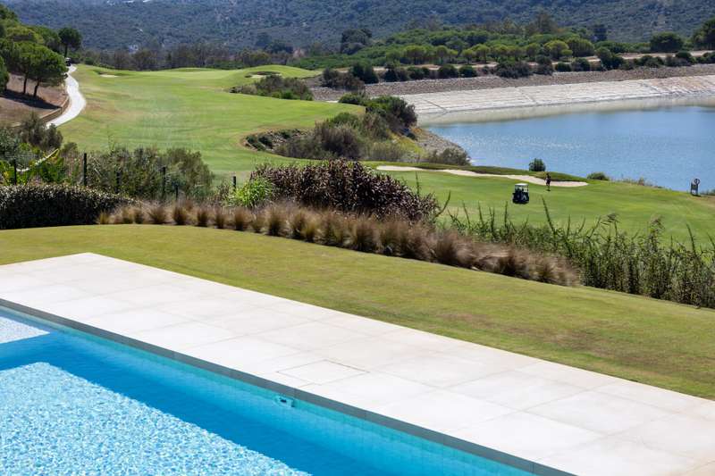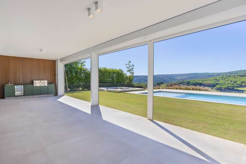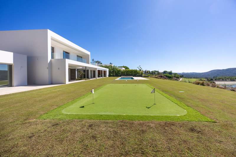 There are places that are not just inhabited, but truly lived in. This villa in Sotogrande Alto is one of them. Located on the front line of one of the area’s most prestigious golf courses, the property opens onto a serene lake, offering panoramic views that invite relaxation and contemplation. Here, life moves at a different pace, defined by the harmony between architecture, landscape, and well-being. Designed with a contemporary language and noble materials, the residence achieves a perfect balance between elegance and functionality. The spacious living room, bathed in natural light, becomes the heart of the home, seamlessly connecting with the landscaped outdoor areas. Each of the five bedrooms has been conceived as a private, tranquil, and sophisticated space, ideal for disconnecting from the outside world. The kitchen and dining room, located in separate areas, are equipped with high-end technology and finishes that reflect exquisite taste, ready to serve as the setting for both intimate gatherings and memorable events. But this villa goes beyond the conventional. On its lower floor, it houses a true wellness and leisure center: sauna, cold plunge area, fully equipped laundry, and pre-installation for a golf simulator with Trackman technology, ideal for training at home without sacrificing professional performance. This level is completed by additional storage spaces, a technical room, and a garage with capacity for several vehicles. The exterior is an extension of the lifestyle this residence offers: a pool integrated into the surroundings, a fire pit area for evenings under the stars, and a putting green to perfect your swing, all surrounded by meticulously maintained landscaping. And as expected in a property of this caliber, security has been intelligently and discreetly integrated: sensors, advanced surveillance, and state-of-the-art access systems provide peace of mind without disrupting the overall aesthetic. This villa is not just a house: it is a statement of style, a commitment to effortless comfort, a setting designed for those seeking the best of Sotogrande with a contemporary and sophisticated perspective. Contact us for more information.