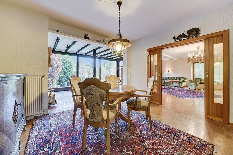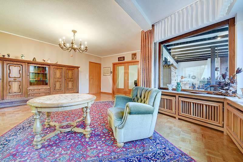 This detached single or two-family house with a full basement in a prime location in Duisburg-Kaldenhausen is ideal for families. It can be used for multi-generational living. The older generation can make excellent use of the rooms on the ground floor and the younger part of the family can feel at home on the upper floor and in the attic. With a living space of 187 m², plus hobby rooms in the attic, and a generous plot of 700 m², this house offers plenty of space for peace and relaxation for all residents. This property, built in 1960, impresses with its timeless charm and solid construction. The oil-fired heating system provides cozy warmth. The furnishings of the house are kept simple and offer the opportunity to add personal touches. The first floor welcomes guests through the representative hallway area and then leads into the large living/dining room and the conservatory with fireplace, where the family can relax and spend time together. The hallway also leads to another room that can be used as additional space for a home office or as a bedroom. The street-facing kitchen offers space for cooking. Access to the terrace and garden is provided by the lift and slide system. The hallway also leads to the modern bathroom with a floor-level shower (suitable for the disabled) and the spacious checkroom, which round off the offer on the first floor. The upper floor offers a living/dining room, a kitchen, a bedroom and a bathroom with bathtub and can be used as a separate living unit with 3.5 rooms or as additional bedrooms or children's rooms for the family. There are 2 hobby rooms in the attic for further use. The loggia on the upper floor invites you to relax and enjoy the sun and offers a wonderful view of the garden and also provides shade for the lower left terrace. The plot area of 700 m² offers enough space for outdoor barbecues and plenty of room for the children to play. This property offers everything a family needs for a pleasant and comfortable life. Whether with the separate living area on the upper floor or with a very spacious living area with up to 5 bedrooms and a lush garden, it is the perfect place to relax and feel at home. There is space for your car in the garage and in front of it or on the side parking space in the front garden. Special notes: We also market the neighboring house, which can be found under the property number 24070022, as well as the garden and pasture areas behind it. It would therefore be possible to realize "door-to-door living" within the framework of family or friendly ties. This can also be crucial for multi-generational projects. Arrange a viewing today.
