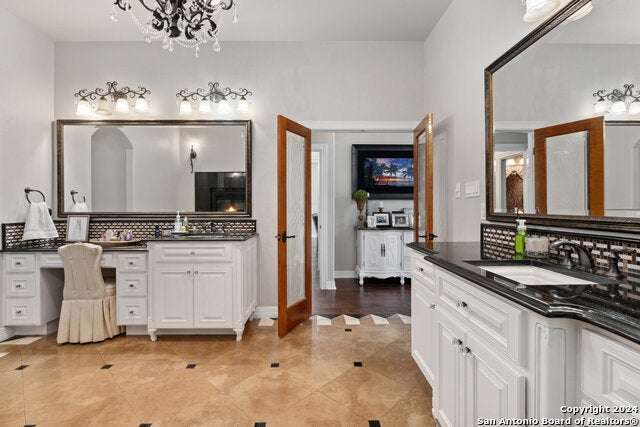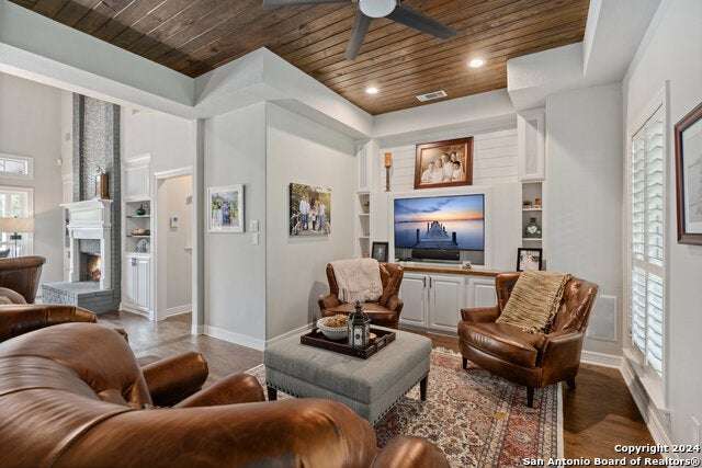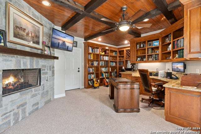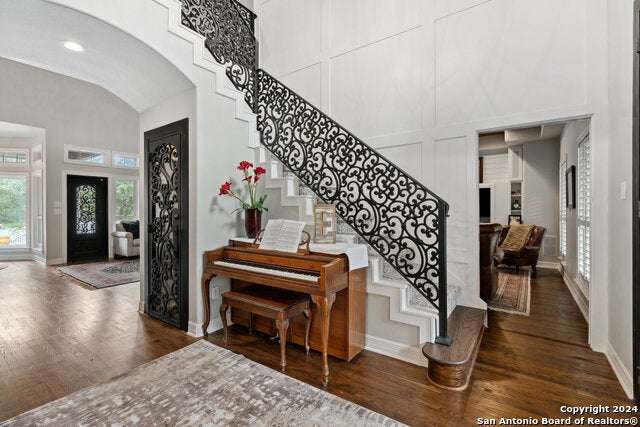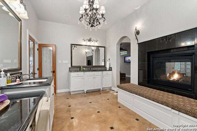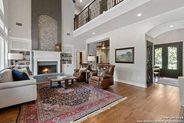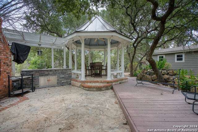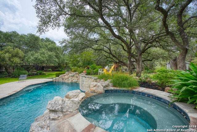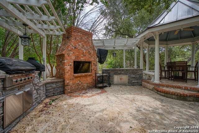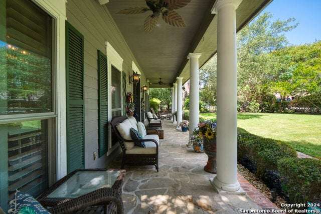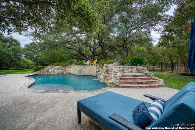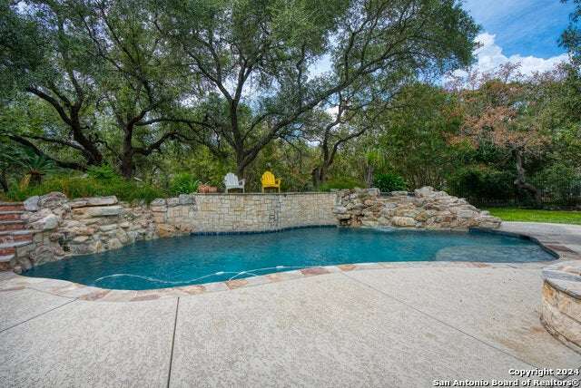 As you approach this meticulously maintained 1+ acre property privately situated in the middle of a charming cul-de-sac, you will undoubtedly be drawn in by the immaculate landscape and inviting front porch. Behind the striking custom iron front doors of this spectacular Southern Living design home, you will find that comfort meets convenience through a functional floor plan boasting impressive upgrades throughout. Upon entering the home, guests are greeted by a grand staircase showcasing custom iron railings and a magnificent entry chandelier. A bright and airy living area featuring a gas fireplace opens into a second, cozy family room. The kitchen is fully equipped with an elevated Ilve Majestic gas range and double ovens with a matching commercial grade vent hood with warming lights. Owners can choose to enjoy meals at the gorgeous quartz counter bar or the breakfast area overlooking the park-like backyard, or for more formal meals, a separate dining room is available. Other amenities include an Elkay water station, a "Sonic" ice machine, and a hidden wine bar with built-in wine refrigerators. One of the most impressive features of this unique home is the primary suite. You truly have to see it to believe it! The bedroom boasts a gas fireplace and access to the backyard. The spa-like bathroom oozes luxury- ornate lighting, spacious walk-in shower, splendid bathtub, separate vanities...and a massive closet with built-in storage. In addition, there is a bonus space with endless possibilities for use! A custom home office can be found right above the primary bath. This executive study features a built-in desk and storage, a wet bar, a gas fireplace and access to a balcony overlooking the backyard sanctuary. More great storage is available in the walk-in attic off the study. Three more bedrooms and a fully-equipped theater room can be found upstairs, which can be accessed by one of two staircases. The secondary bathrooms feature walk-in showers. The theater room is "decked out" with custom furniture and audio/visual equipment, all of which convey with the sale of the home. There is yet another walk-in attic off the theater room that is completely finished out. This home backs up to a greenbelt and Panther Springs Park, making the backyard a private oasis for owners. More than 70 trees live throughout this 1.14 acre property. The backyard is fully fenced and showcases a beautiful heated pool with a spa and a waterfall feature. Current owners have enjoyed entertaining guests on the gazebo, which has an outdoor kitchen, a fireplace, a television, and even a water feature. A custom built shed (which has housed a golf cart) is equipped with electricity, making this space ideal for a workshop. The generous owners are conveying many extras: audio/visual equipment (including speakers found downstairs, in the theater room, on the front and back porches, and near the pool and gazebo, Sonos, the theater room screen and projector, five televisions, and wall-installed Ipads that operate it all), refrigerator, plantation shutters, theater room furniture, and all light fixtures, with the exception of the dining room chandelier (which has personal meaning to the family.) Most furniture is negotiable. As you can undoubtedly tell from all of the amenities described above, this one is special! This home has been lovingly cared for and continuously upgraded by the family who built it. We are seeking the next special family who will be lucky enough to call 22903 Mangrove Dr HOME.