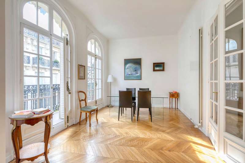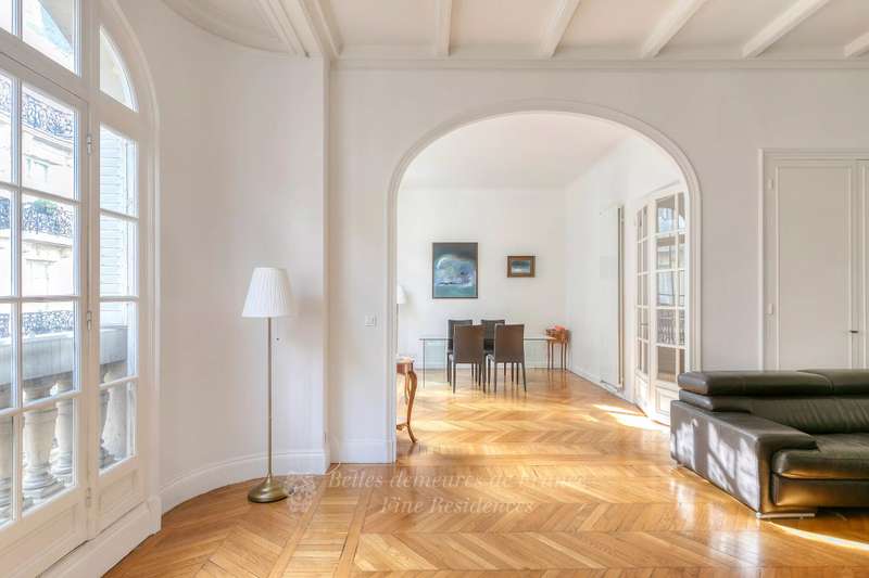 This superb apartment is on the 3rd floor of a fine early 20th century freestone building located in a peaceful street a stone’s throw from Avenue Victor Hugo. It includes a living/reception room featuring a box ceiling and Herringbone parquet flooring, a dining room, a fitted and equipped kitchen, three bedrooms, a dressing room, a bathroom with a wc, a shower room with a wc, and a separate guest wc. Cellar. Collective heating. The building has a caretaker, and is equipped with a lift, a door-entry code and an intercom.