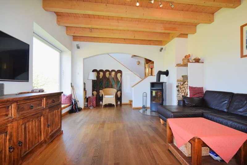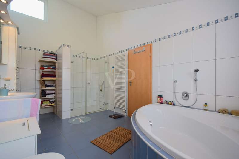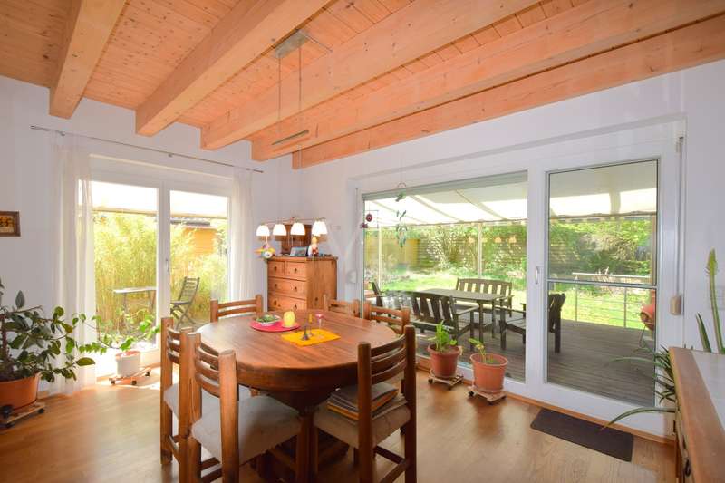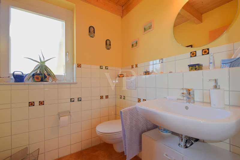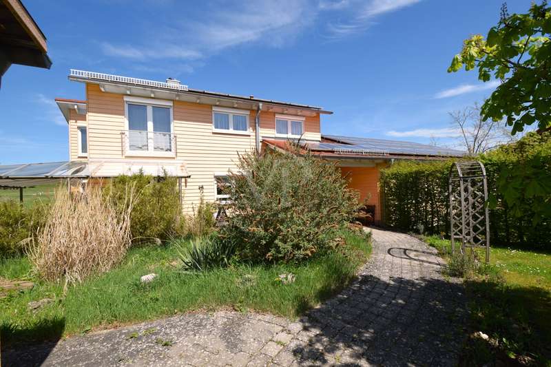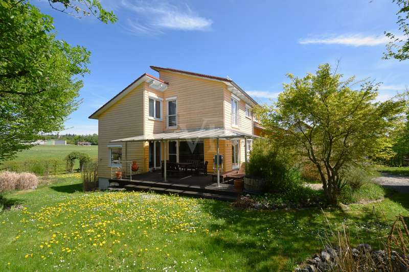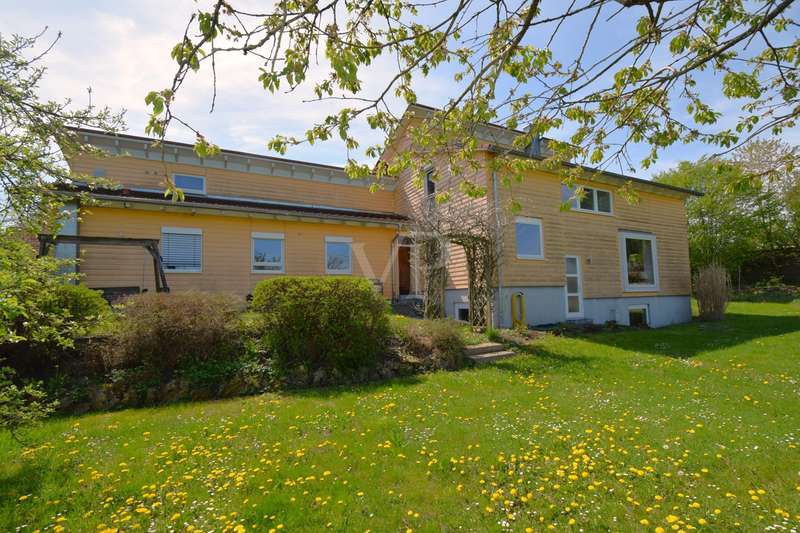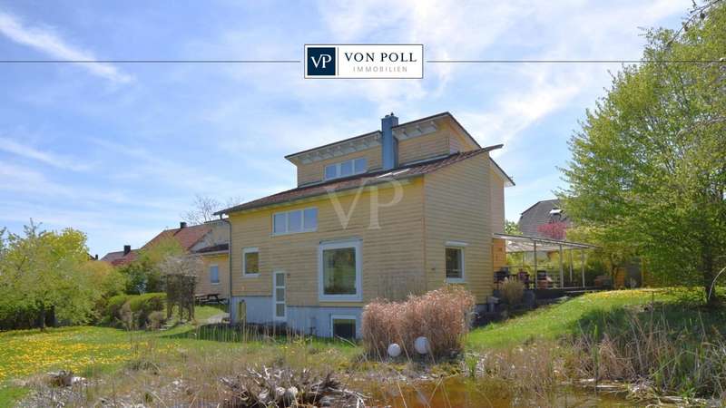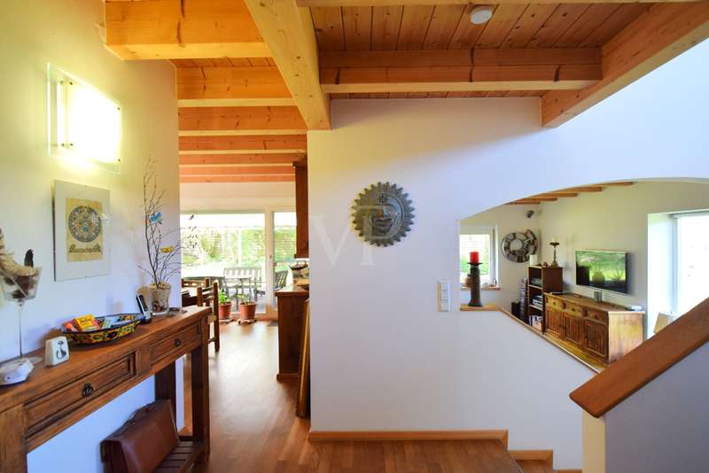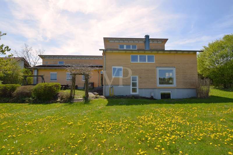 Living and working in harmony with nature - sustainable low-energy house with practice extension, natural pond and ventilation system This extraordinary ensemble consisting of an ecologically built low-energy residential building and a fully equipped, separate practice building awaits you in a dreamlike, absolutely quiet peripheral location - adjacent to an unobstructable landscape conservation area with juniper heath. Both buildings were erected in 2005 in high-quality Bauer timber construction (KfW 50 standard) and combine ecological awareness with state-of-the-art living and working comfort. Only organic materials were used inside and out - from organic plaster and FIN Longlife exterior paint to sustainable building services. First floor rooms: - Spacious, light-flooded living area with wood-burning stove - Open kitchen with modern fitted kitchen and adjoining pantry - Bright dining area with direct access to the terrace - Friendly entrance area with checkroom - Guest WC (barrier-free) Rooms on the upper floor: - Bedroom with dressing room and bathroom access - Children's room with integrated storage niche - Open office area - Spacious daylight bathroom with corner bath, shower and WC Rooms in the basement: - Separate guest room - Modern guest bathroom with shower and WC - office - Storage room - Laundry room and heating/technical room Flexible use, e.g. as a home office, studio or granny apartment Outdoor area - pure nature: - Fantastic ingrown garden with natural pond and stream - Barbecue fireplace, wooden deck, pergola with vine and blue rain as a green roof - Spacious, all-round wooden terrace with glass roofing (stainless steel supports) - Well-kept lawn with robot lawn guide and station - Dry stone wall (to be partially rebuilt) - Property to the north side enclosed with wooden fence - Double garage and additional parking spaces (practice) - Pumps for cistern and pond supply Technology & sustainability - Solar thermal system for heating support - Photovoltaic system (optional) - New gas boiler (2023) - Power supply from 100% renewable sources - Ventilation and extraction system with heat recovery - Water softening system for service water - Rainwater cistern for WC flushing - Fiber optic connection Practice building - professional and well thought out - Approx. 80 m² usable space - fully furnished and ready for immediate use - Reception desk, desks, filing cabinets, shelves - Barrier-free access, WC suitable for the disabled - Three parking spaces directly next to the building - Heating via thermostat-controlled radiators - Water/waste water connections, electricity from 100% green electricity - Ventilation with heat recovery - Stainless steel scaffolding for advertising sign - Well-kept lawn Conclusion A unique overall concept of sustainable living and professional working - combined on a natural property with excellent facilities. Ideal for nature-loving families, self-employed people or practice communities who value ecological building and a healthy quality of life.