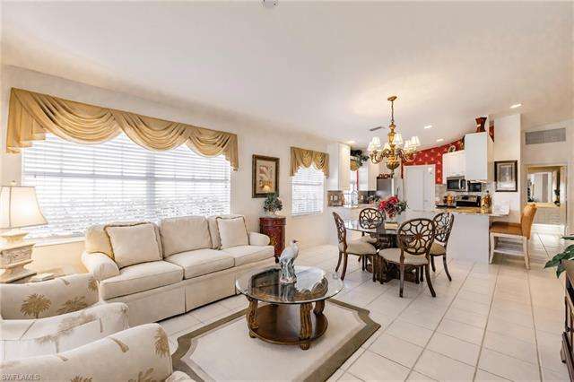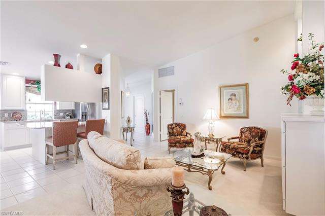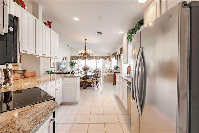 Very quiet villa in a middle of the community location. Enjoy the Large screened patio facing west for spectacular nightly sunsets! Features include; 2 large bedrooms with large walk-in closets, open den area, 2 bathrooms, and a 2 car garage! The Clay Tile Roof was replaced in 2018, the A/C unit is 5 years old, Stainless Steel appliances in the kitchen, and some furniture is available for purchase too! Village Walk is just 5 miles from Vanderbilt Beach and 4 miles to the shopping and dining gem - Mercato! HOA fees cover landscaping, cable and internet service, and full use of amenities - including tennis, pickleball, bocce ball, gym with lap pool, 2 heated resort pools, on-site restaurant, miles of paved and lighted walkways, and those cute Venetian style bridges!! You will love this home and this community!! A Perfect condo alternative!