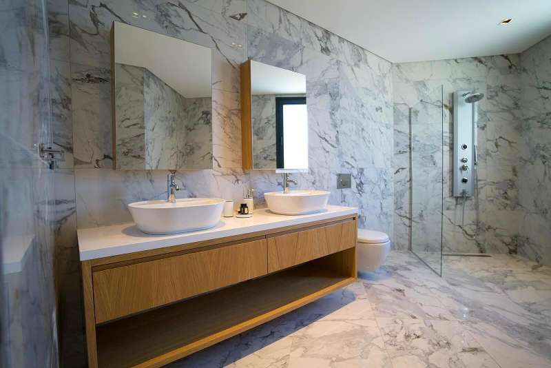 Four-bedroom villas have a living room, open-plan kitchen, four bathrooms, and a balcony, while five-bedroom villas consist of a living room, open-plan kitchen, five bathrooms, and a balcony.