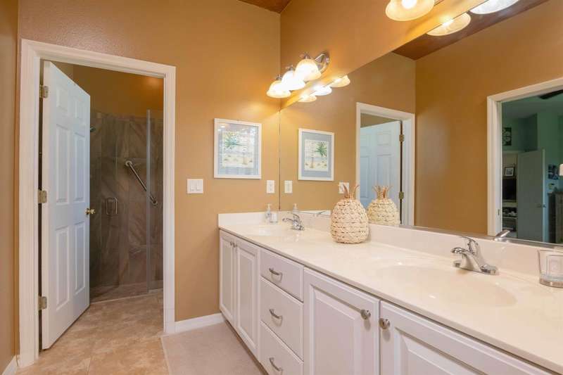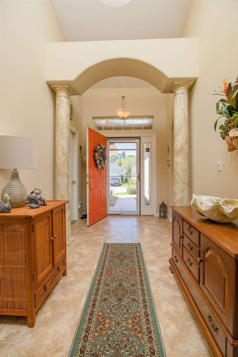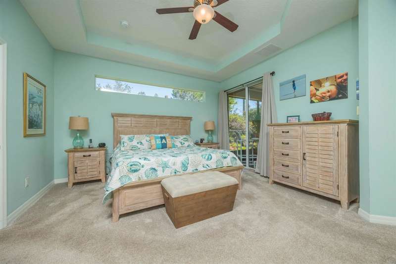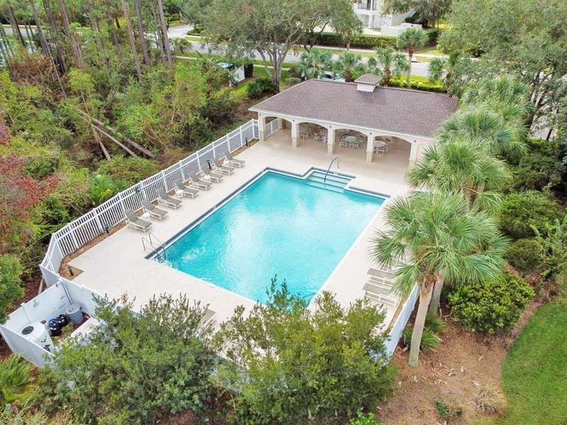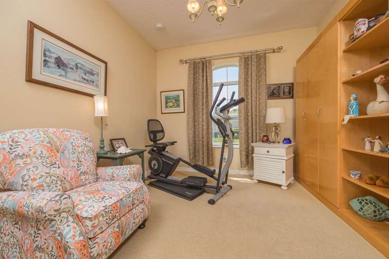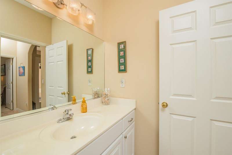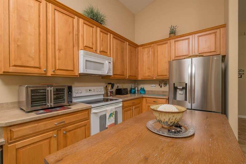 LOW MAINTENANCE, LOW PRICE & LOW HOA FEE (LAWN CARE INCLUDED) MAKES THIS SPACIOUS CONCRETE BLOCK 3BR/2BA A PERFECT COMBINATION FOR A LAID BACK LIFESTYLE! Ideal as a main residence or as a vacation home. Enter the wide, tall foyer to a roomy eat in kitchen with lots of cabinets, counters & a built in desk! Formal dining room & large living room with high ceilings & lots of light lead out to 17x10 screened lanai overlooking private treed yard backing to a greenbelt/preserve. At the back of the home is the spacious owner suite with huge walk in closet, high eyebrow window & sliders leading to screened lanai. Owner bathroom includes double vanity, garden tub & a separate beautifully tiled shower. 2nd bedroom includes big walk in closet & Murphy bed. Across the hall is the 3rd bedroom with 2nd bathroom, plus washer & dryer closet in between. Community pool & tennis. Less than 5 min to shopping & less than 15 min to the beach!
