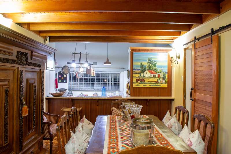 This impeccably designed multi-level residence offers a perfect blend of modern comfort and classic elegance, promising an exceptional family living experience. Nestled against a hill, it provides a unique architectural charm. As you step through the front door, you are greeted by a cozy lounge area setting the tone for the rest of the house with its tasteful decor and warm ambiance. Stackable doors open up to the cozy TV room, the ideal spot for relaxation and gatherings with family and guests. The adjacent dining room is an elegant space perfect for hosting formal dinners or casual meals with loved ones. With its modern kitchen, featuring granite countertops, a centre island, a gas hob and oven, this home caters for entertainment and is a chef's dream come true. The separate scullery ensures a clutter-free cooking space. An additional TV room with large windows provides a comfortable space for family movie nights or simply unwinding after a long day. This home also offers the convenience of two dedicated study spaces on the upper level, perfect for remote work or study sessions. The property boasts four generously sized bedrooms, each thoughtfully designed to offer comfort and privacy. In addition, the three well-appointed bathrooms with modern classical fixtures and finishes add a touch of luxury to your daily routine. The outdoor entertainment area next to the swimming pool is a true gem, featuring a lapa complete with built-in braai. It's an ideal space for hosting gatherings, enjoying barbecues or simply soaking in the South African sun. The property boasts a double garage and shadeport for two vehicles. This home offers a tranquil retreat while still being conveniently close to schools, shopping centres and other amenities. Don't miss the opportunity to make this stunning multi-level property your forever home. Contact us today to schedule a viewing and experience the beauty and comfort it has to offer.