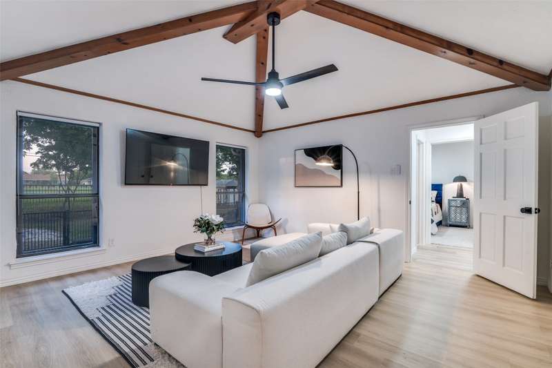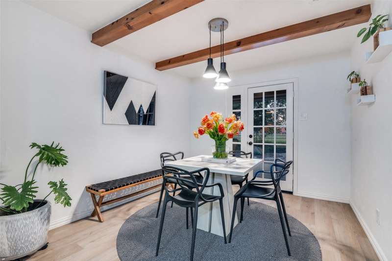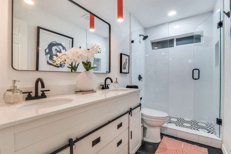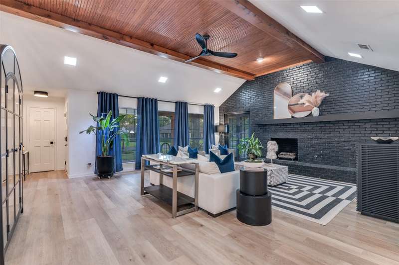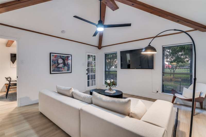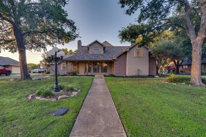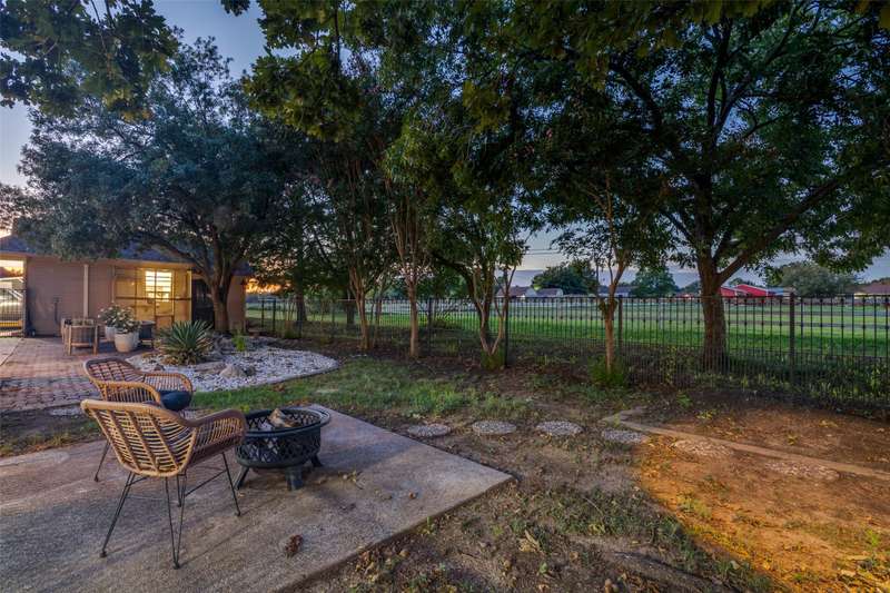 Beautifully updated single-story home situated on an expansive .40-acre lot in sought-after Sachse South Estates. This 4-bedroom, 2-bath residence offers 2,430 sq ft of thoughtfully designed living space blending classic charm with modern comfort. The inviting exterior features painted brick, a wrap-around porch, mature trees, and a wrought-iron fenced yard. Step inside to find fresh paint, updated flooring, stylish lighting, and new hardware throughout. The spacious living area is anchored by a cozy fireplace and flows seamlessly into a renovated kitchen with newer appliances and updated finishes, perfect for entertaining and everyday living. The private primary suite boasts a large walk-in shower, built-ins, and a generous walk-in closet, while secondary bedrooms provide flexibility for family, guests, or office space. Additional highlights include a dedicated office or mudroom, updated bathrooms, and plenty of storage. Outdoors, enjoy a She Shed with heat and air, ideal for hobbies or a home office, plus a separate storage building or workshop, dog run, and serene views of horses beyond the back fence. Recent improvements include foundation work and plumbing with durable PVC for peace of mind. A side-entry 2-car garage and carport provide ample parking. Conveniently located within Garland ISD with choice of schools, this home offers easy access to major roadways, shopping, dining, and entertainment. With its large lot, versatile spaces, and stylish updates, this property is truly a rare find in Sachse!