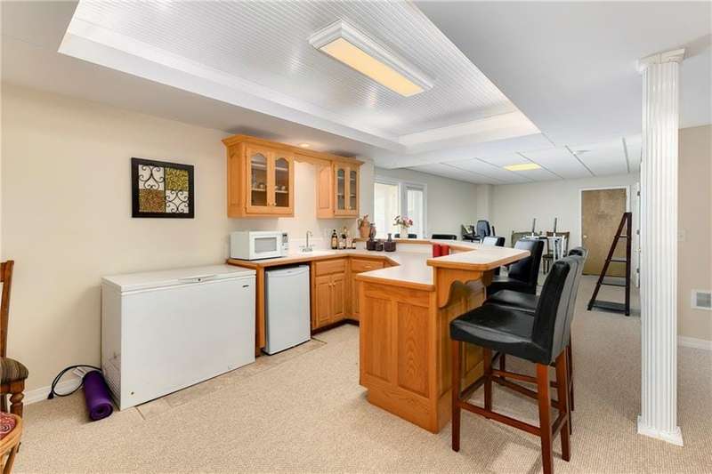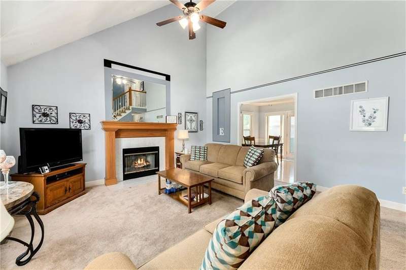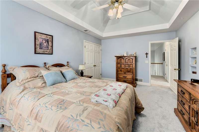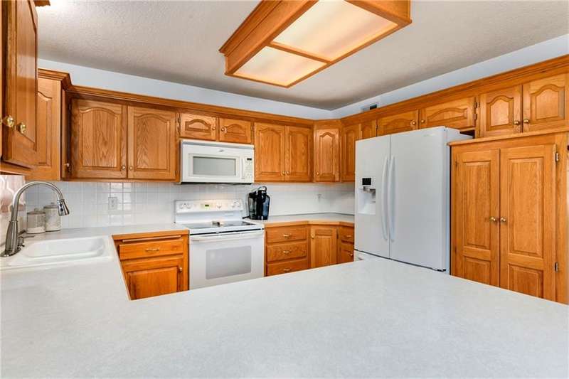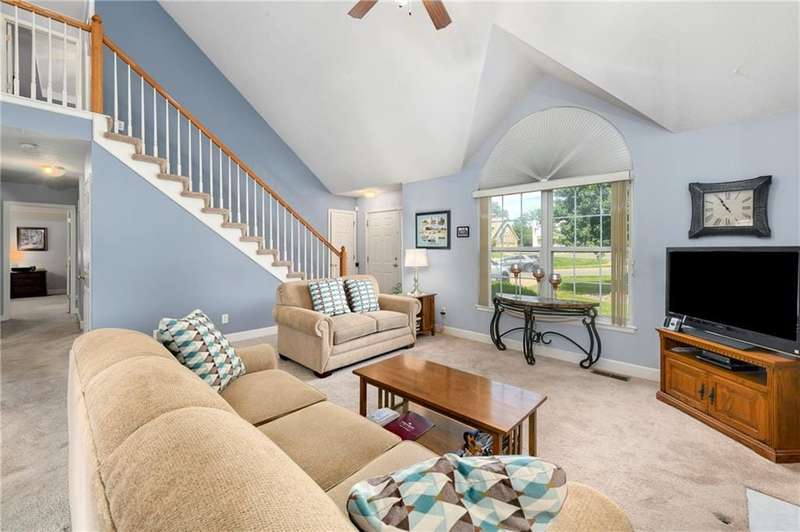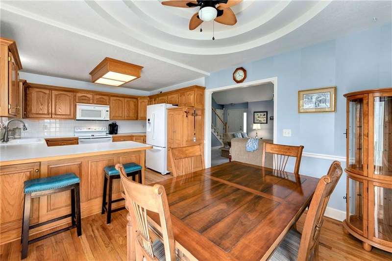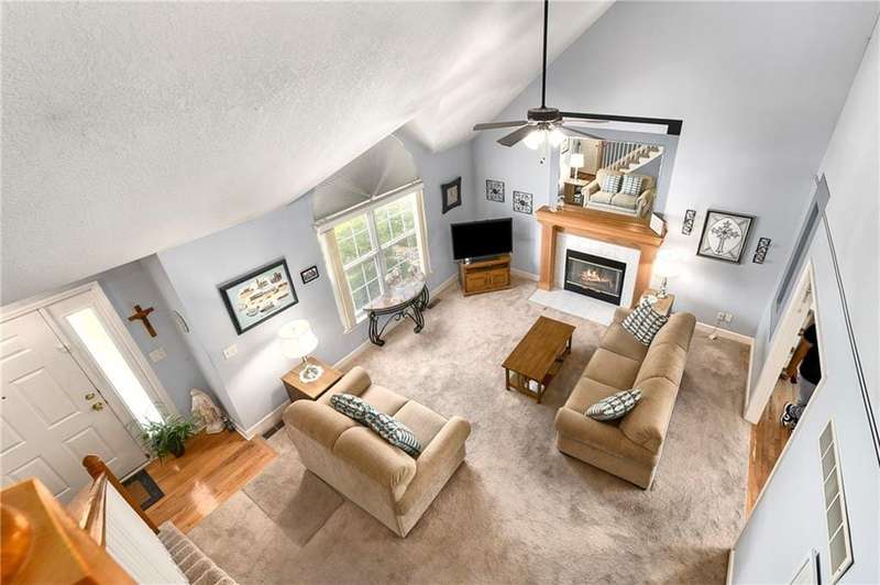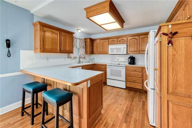 LOCATION, LOCATION, LOCATION. Easy highway access to anywhere in the metro. A truly remarkable opportunity and value with this beautiful 1.5 Story residence on the corner of N Washington and N Jefferson in THE OAKS. An amazing home with special touches on all 3 levels - inside and out. Step into an inviting 2 story living room with vaulted ceilings, large picture window and a statement fireplace. The kitchen / dining combo is open to the space and makes for easy living and entertaining. Breakfast bar provides extra seating, floor to ceiling windows overlooking both the back and side yards bring in natural light while providing access to the enclosed porch and steps to the back yard. Miles of counterspace in the fully equipped kitchen create a fun and functional space. Also on the main floor is a separate laundry room (washer (6 months old) and dryer stay), cute powder room for guests, and comfortable primary suite with 2 closets, ceiling fan, ensuite bath with dual sinks, whirlpool tub, separate shower and heated floors. Upstairs are 2 guest bedrooms with oversized closets. One is nicely outfitted for a home office, if needed. The second full bath is upstairs. In the lower level prepare to be WOW'ed with the family room that is ideal for entertaining with a large wet bar, plus another full bath, storage, access to the 3rd (utility) garage and the outside patio area that includes the porch swing. Need more storage, then be sure and check out the cute little shed with the handy ramp. This wonderful residence offers custom ceiling treatments throughout (vaults, framing, spirals, beadboard, etc....). This home and this neighborhood are conveniently located with easy highway access, all within the award winning North Kansas City School District.