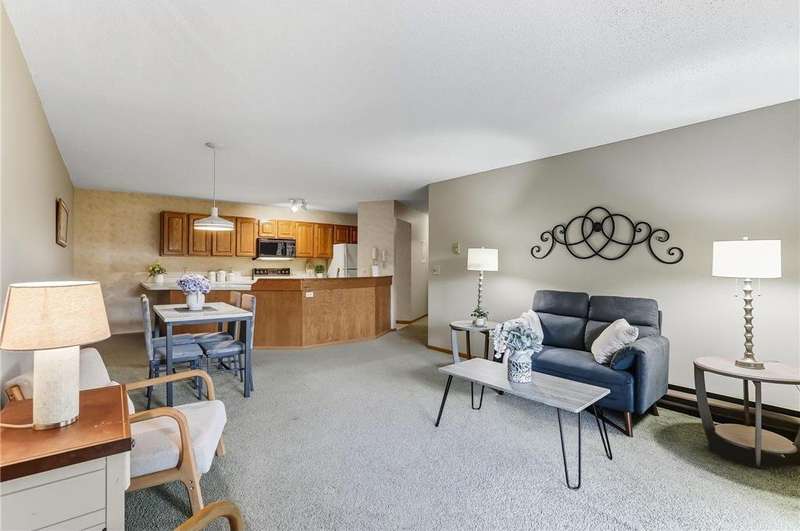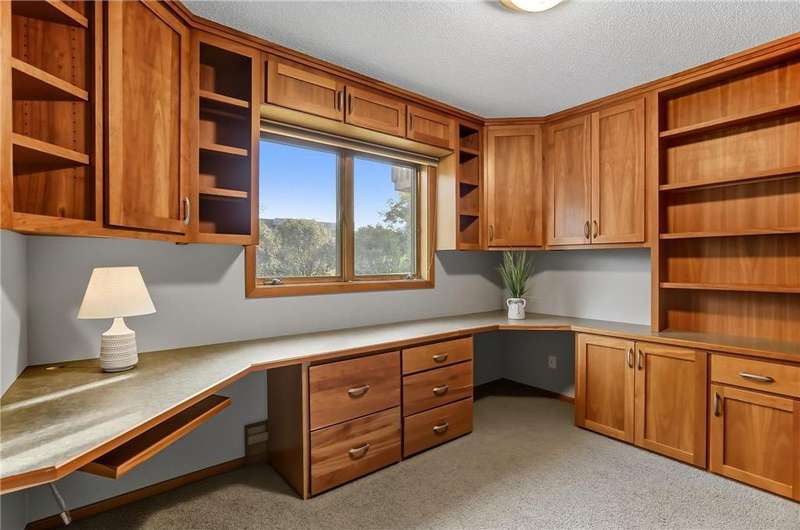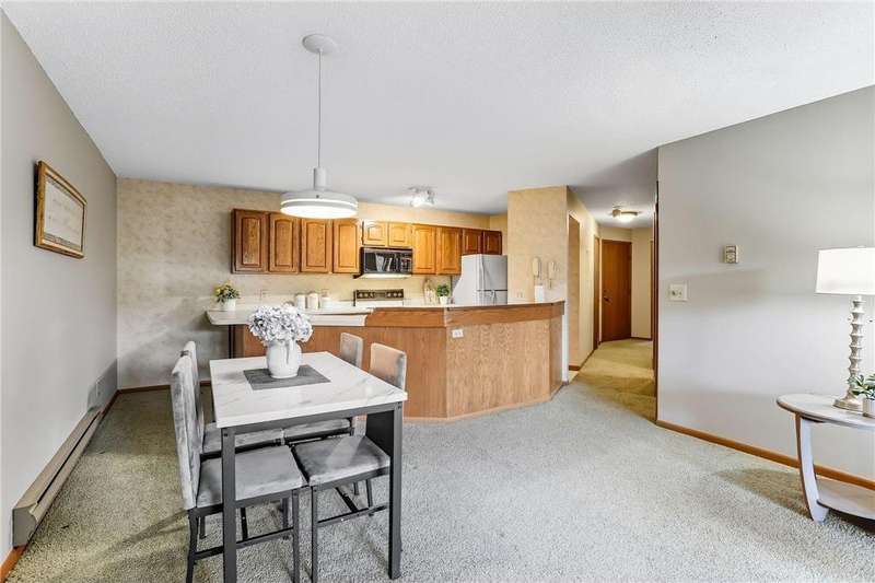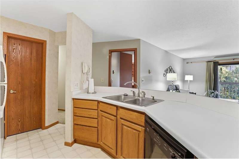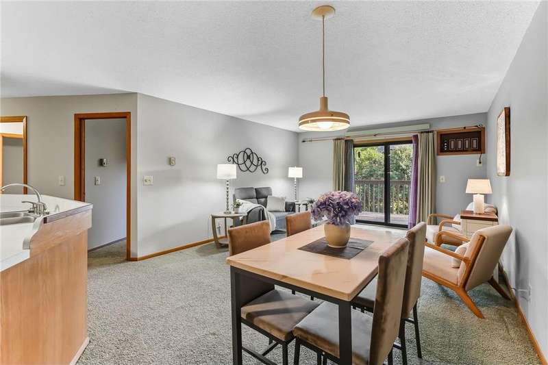 Spacious 2-bedroom condo with a bright, open layout. The large Living Room offers plenty of space for relaxing or entertaining, with sliding doors leading to a private Deck that overlooks green space. The Kitchen has abundant cabinetry, lots of counter space, and a breakfast bar that connects to the Dining Area. The Owner’s Bedroom features a walk-in closet, while the second Bedroom is currently set up as a home office with custom cherry cabinetry—easily converted back into a bedroom if needed. Freshly painted in 2025, this condo also includes a dedicated Laundry Room, updated water heater, and a 1-car Garage.