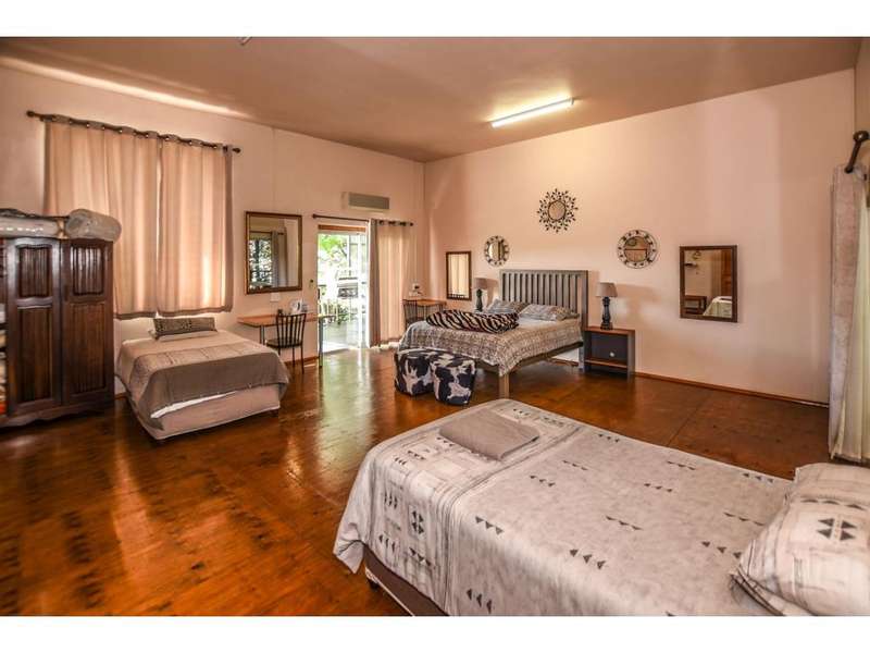 Currently zoned for commercial use and previously operational as vibrant guesthouse, this exciting double storey property offers the discerning businessman 10 bedrooms ( all en suite ) plus a secondary cottage with 3 bedrooms, dining area which opens onto the huge entertainment patio with built in braai. Other important features include ample covered & open parking, workshop, staff quarters, 20 000 l water storage tanks with pump, CCTV cameras and electric fence and swimming pool. The property borders park area, offering views from the upper level, is completely wheelchair accessible and the price includes all guest house related contents. Walking distance to Sonpark centre and Rob Ferreira hospital and close proximity to major routes, Nelspruit CBD and all other amenities.