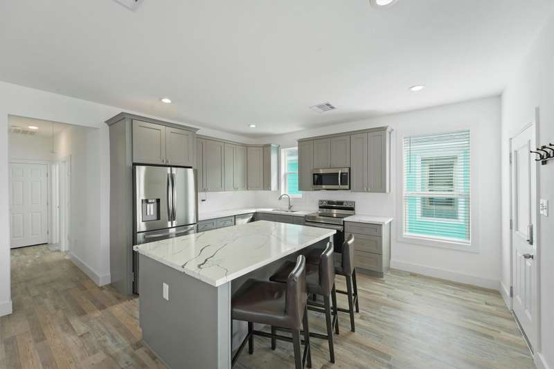 This exceptional, newly constructed three-bedroom, two-bathroom home is located in the heart of Galveston, Texas. Just a short walk from the beach, you can start each day with the refreshing ocean breeze. The home offers a spacious front deck, perfect for hosting gatherings, and a private master bedroom deck with sweeping views of the sunset. Inside, you'll find stunning wood-inspired flooring and sleek granite countertops throughout the kitchen and bathrooms. Just steps from the beach, this property offers the ideal opportunity for a primary residence, vacation home, or a lucrative short-term rental. Additional features include an EV charger and a fully enclosed garage, perfect for storing your vehicle or boat. Also FOR LEASE