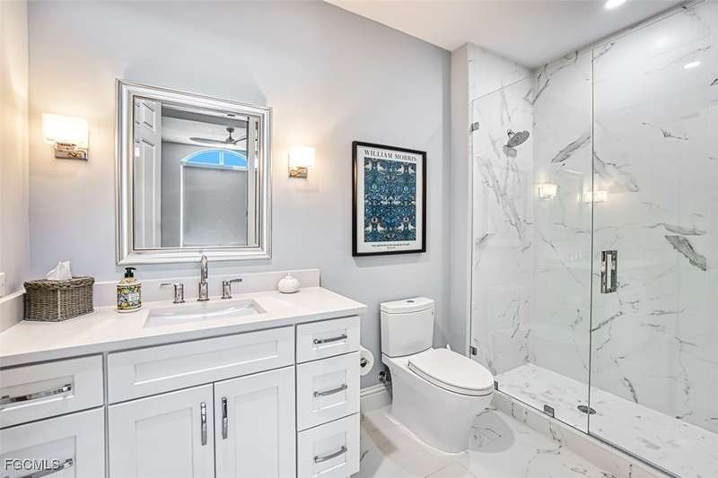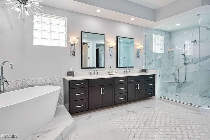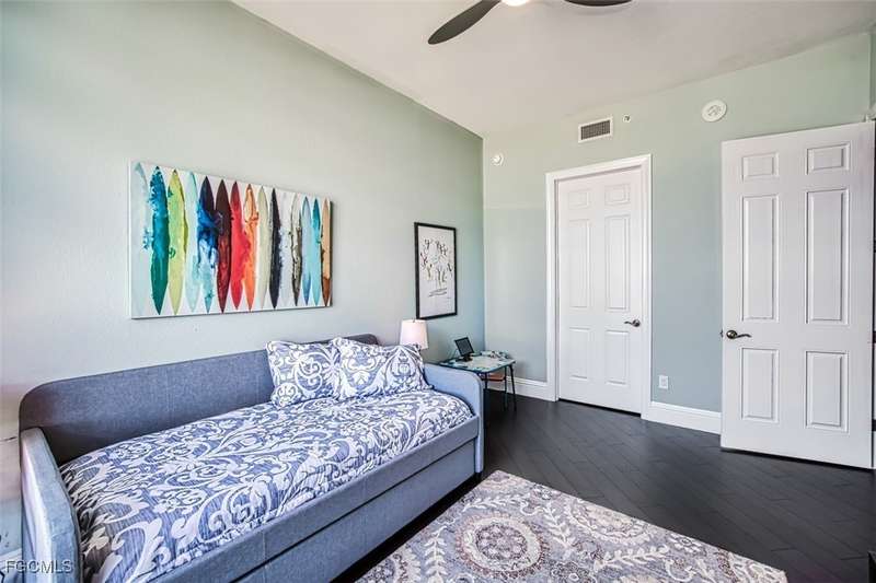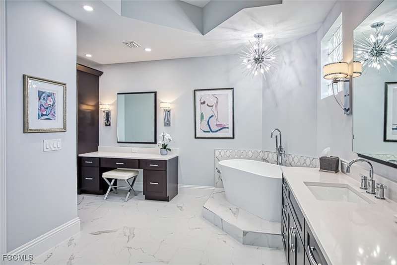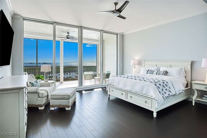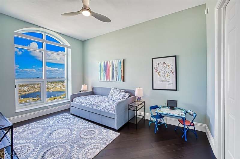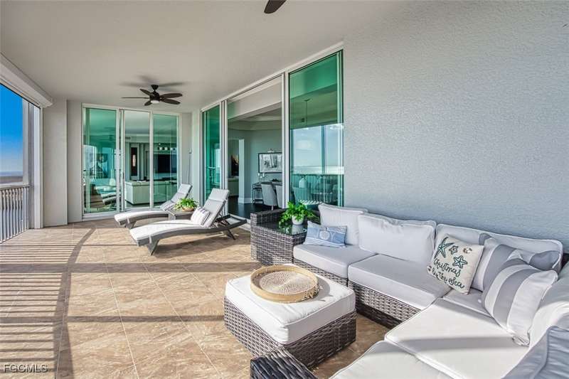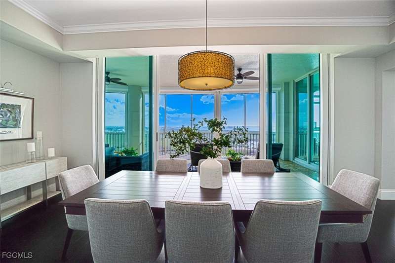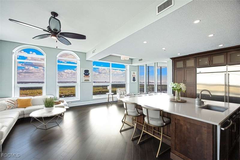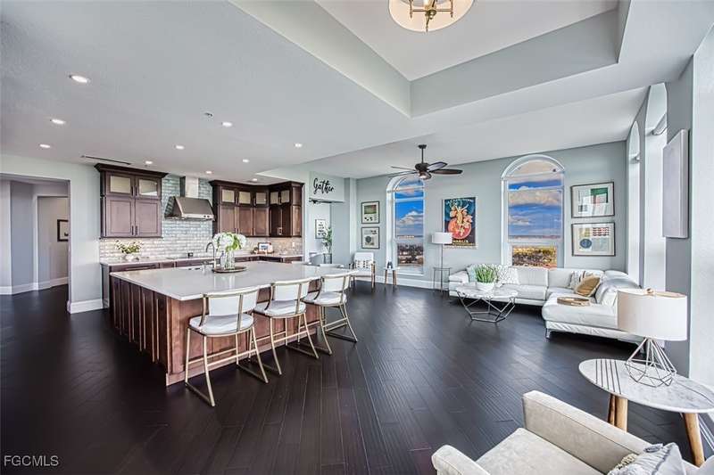 This RARELY avail 4,300+ sq ft, 20th fl PH is as STUNNING inside as the view is outside. The interior has been completely renovated & updated w/high end finishes (a complete list is attached to the listing) while the exterior vistas offer panoramic views equal in the WOW factor! The moment the secured elevator opens into a private foyer & you continue through the tall, double doors, your eyes are drawn out to the Gulf & Bay. The waters shimmer from the sunlight by day & moon beams by night. Catch The Key West Express, FMB Pirate's ship, shrimping & fishermen's boats heading out every morning and returning each evening. Floor to ceiling sliding glass doors & tall, arched windows frame the mesmerizing horizon from almost every room. The N end of FMB & E end of Sanibel, including the historic lighthouse, are bookends flanking the endless view. Two generous, tiled, screened lanais - #1 is 10' x 20' and accessed exclusively from the primary retreat while #2 is 34' X 15' and accessed by the living, dining & family rms - offer outdoor living & entertaining space. The sliders & windows are hurricane impact & both lanais are out-fitted with Storm Smart shades. 10' ceilings offer additional volume & light. The main living area, currently used as a media room, has a custom, built-in, floating entertainment console. This area flows into a formal dining rm where you can enjoy family gatherings while witnessing colorful sunsets. Adjacent is a Butler's Pantry w/wet-bar & wine refrigerator. A chef's kitchen, featuring a sizable island & countertops w/quartz & SS appliances, is open to the family room allowing the family chef to interact w/guests while prepping meals. A den/office, located just off the family room, could easily be turned into a 4th bedroom. The 1/2 BA w/pedestal sink & 2 in-suite guest bedrooms & ample laundry w/deep sink & storage complete this end of the condo-home. For privacy, the primary suite is located on the opposite end from the guest bedrooms and has a private lanai, 3 sizable walk-in closets w/California Closet organizers. The in-suite primary BA features dual sinks & separate vanity w/quartz, private water closet, large walk-in shower & free-standing tub. A generous 19'W X 35'D private, under-bldg garage conveys. A detached 1-car garage is available for an extra cost. All of this is situated on 50+ acres providing privacy due to the low-density. Enjoy a 25-acre crystal clear lake, lush, tropical vegetation & resort style amenities including a 6000+ sq ft completely renovated clubhouse w/fitness center, yoga studio, billiard rm, gathering space, dining area, kitchen & media center. The grounds feature tennis/Pickleball courts, bocci, dog park & 1-mile long shell path surrounding the lake. The property backs up to 700+ acres of preservation land & offers a prime location for walking to a beach, restaurants, shops, grocery & close enough to a bike to Sanibel & FMB.