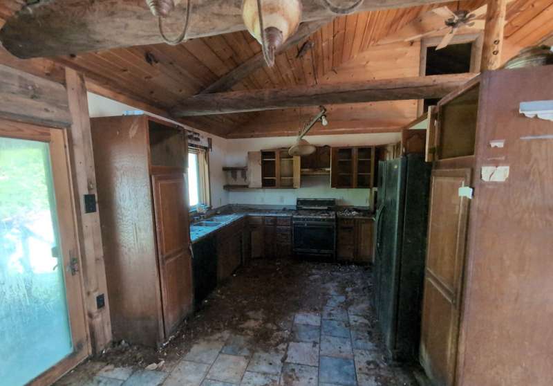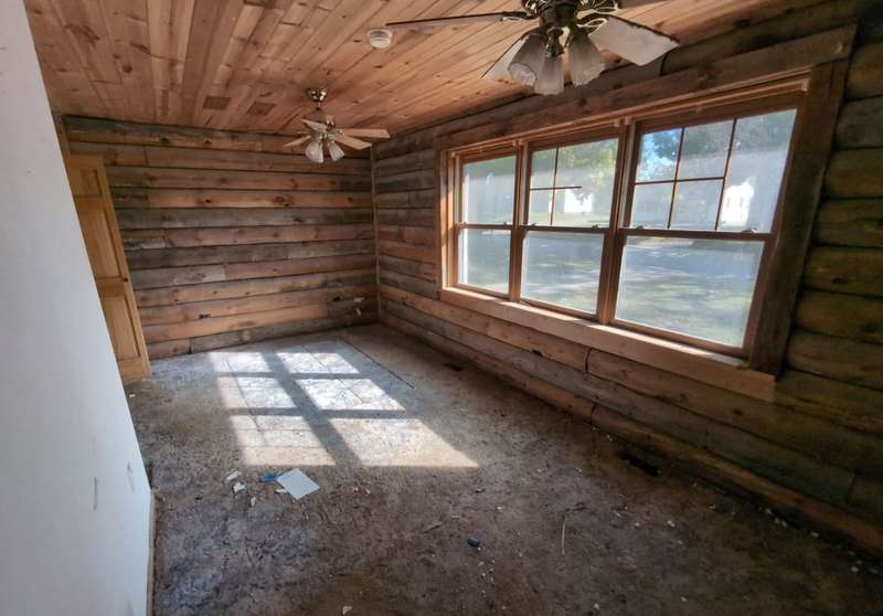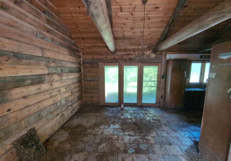 One-of-a-kind log cabin-style split foyer featuring 3 bedrooms and 2 bathrooms, filled with natural wood accents and brimming with potentialready for you to make it your own!