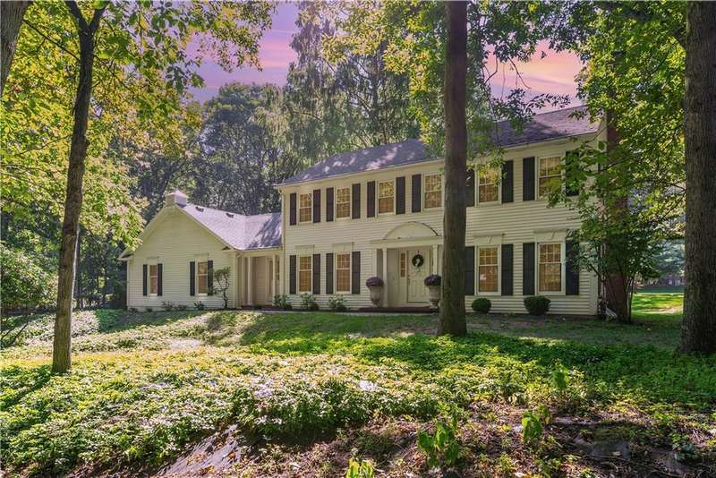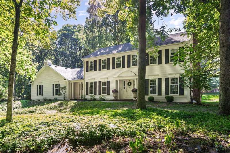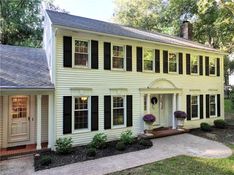 Experience timeless elegance and modern comfort in this 2,568 sq ft French Country?inspired Colonial, nestled on a private .60-acres in one of the area's most sought-after neighborhoods. Surrounded by mature trees and natural beauty, this residence offers both privacy and convenience?just minutes to Bushnell's Basin dining, Erie Canal path, parks, shopping, and easy access to the surrounding areas via Routes 96 & Highway 490. Pittsford Schools!Step inside the gracious front entry hall, where crown moulding and sophisticated details set the tone. The heart of the home is the brand-new 2024 kitchen?designed with entertaining in mind. Granite countertops, a subway tile backsplash, and sleek new fixtures complement the open layout, offering ample prep space and a welcoming flow that's perfect for gathering with family and friends.Fresh paint throughout, new hardwood flooring in key areas, luxury carpet in bedrooms, and a custom stair runner all elevate the interior. Updated baths feature stylish mirrors and lighting, while built-ins now shine with custom LED illumination.The inviting floor plan boasts a formal dining room ideal for holiday hosting, a family room with a wood-beamed ceiling and fireplace, and a refined living room with a second wood-burning fireplace. A newly finished lower level with LVP flooring expands your living space with endless versatility.Retreat to the spacious primary suite with private en-suite, complemented by three additional bedrooms offering generous dimensions. Outside, a park-like backyard with a tranquil deck is the perfect setting for summer grilling, entertaining, or simply enjoying the serenity of your surroundings.With a two-car attached garage, countless upgrades, and an enviable location, this home harmonizes classic character with modern luxury?truly a rare opportunity!
