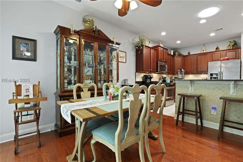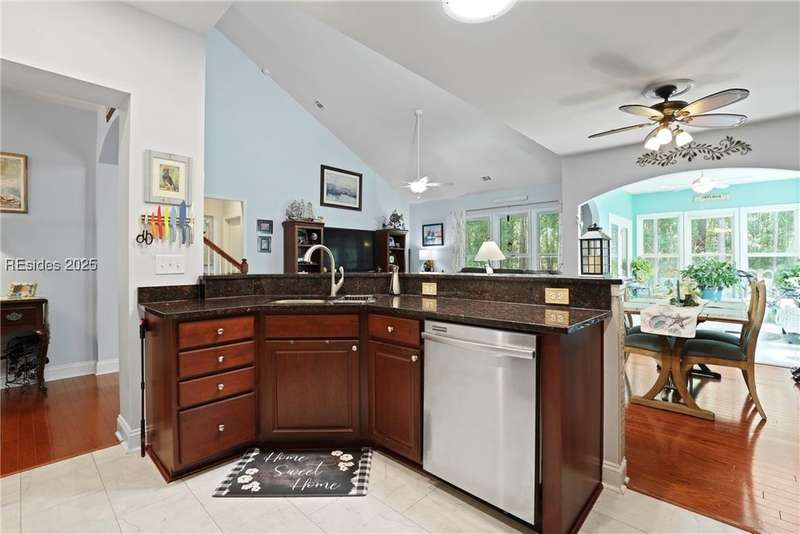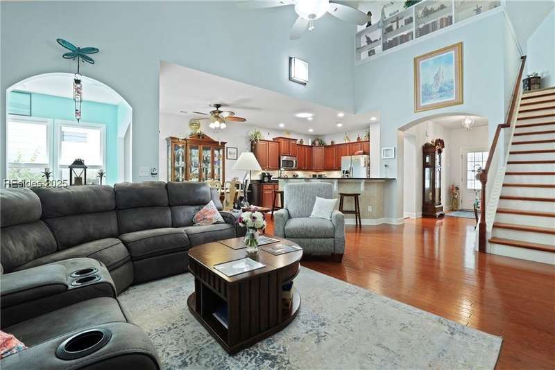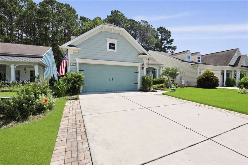 Welcome home! This inviting Lowcountry home features a spacious front porch and open floor plan perfect for entertaining. The great room flows into the dining area and Carolina room, with a wall of windows leading to a screened porch and patio. The primary suite offers a walk-in closet, double vanity, soaking tub, and separate shower. Spacious Copper Ridge with Loft. Situated on a wooded lot, the setting is mesmerizing as you enjoy your morning coffee from your screen porch or sit on your front porch. Located on a of a quiet cul-de-sac street, this home is loaded with upgrades from the smooth ceilings to the wood floors in the main areas; kitchen w/stainless appliances, gas range, granite countertops, staggered cabinets, roll-out shelving, subway tile backsplash, tiled front breakfast bar; versatile Carolina Room; den/office/hobby room; second floor w/living room, full bedroom/bathroom; laundry room, 4' extended garage with pull down stairs to over garage storage. Screen garage door is a bonus.