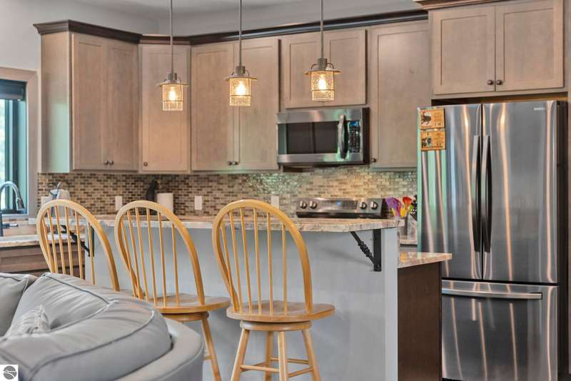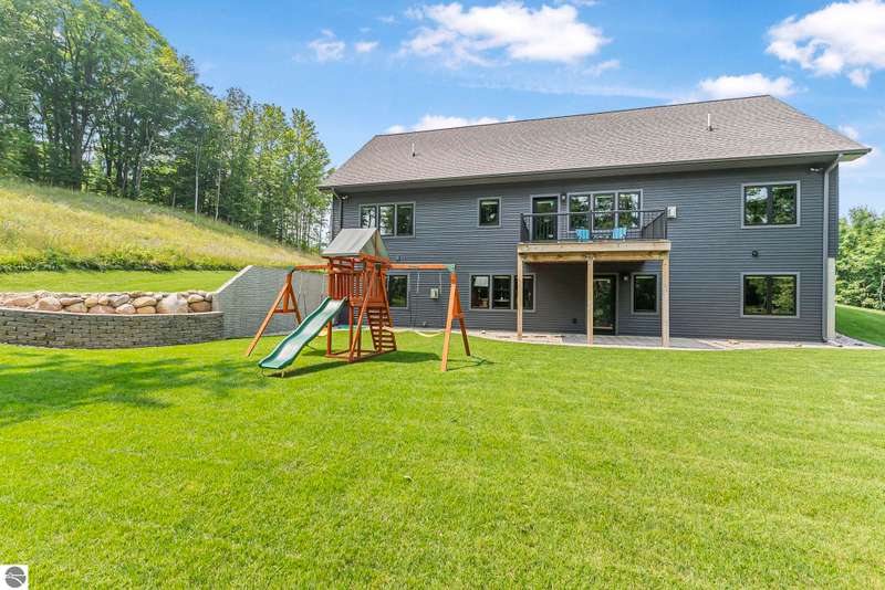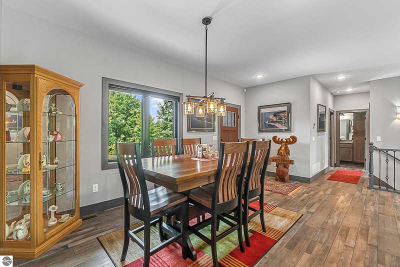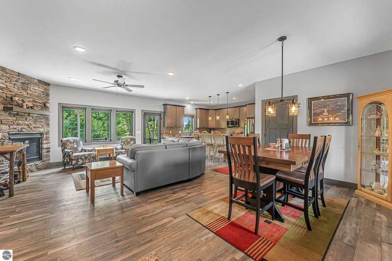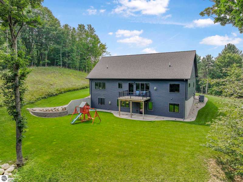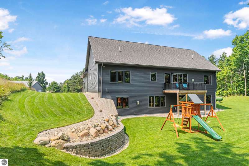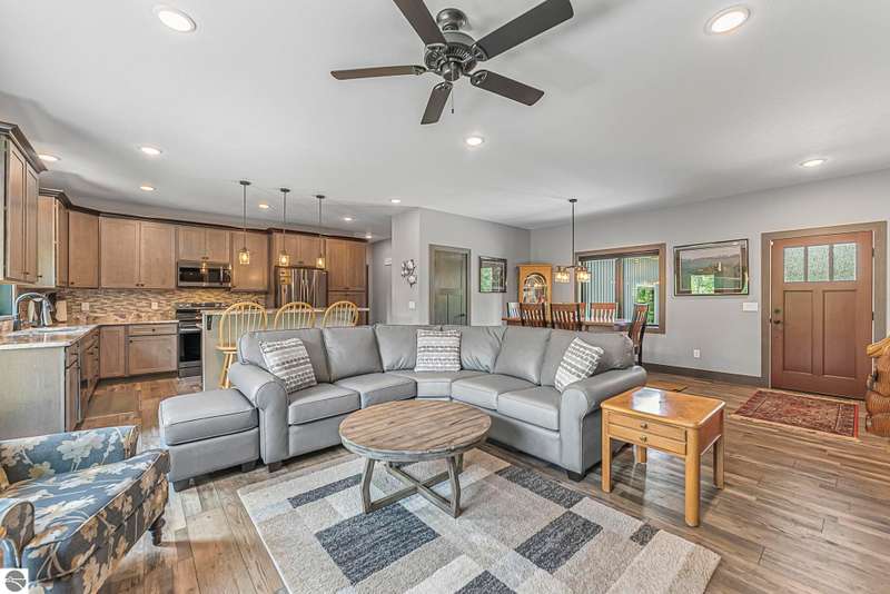Like new, one owner custom well-crafted home features an abundance of style and character throughout with attention to detail. Elegant entry welcomes you into spacious open layout with island kitchen design featuring stainless appliances, granite counter tops, pantry and luxury vinyl plank flooring that flows through main living areas. Nice sized Dining area. Living room with big windows overlooking private rear yard, natural gas f/p and access to rear deck. 9ft ceilings. Gracious main floor primary suite includes walk-in closet, private bath with soaking tub and tiled walk-in shower. Main floor laundry room and mud room. Full finished lower level with 4th bedroom, full bath, family room, office space & wet bar. Home is complete with attached finished 2 car garage plus an additional 32'x48' finished heated pole building with its own electric meter and two 10'x10' overhead doors and 12 ceiling height. Take advantage of a nice manicured grounds with irrigation and over 7 beautiful acres to roam around on. All of this conveniently located in Leelanau County yet a short distance to downtown Traverse City, tart trail and wineries, dining, shopping and Munson Hospital.