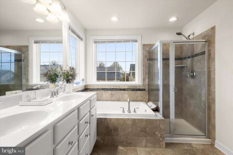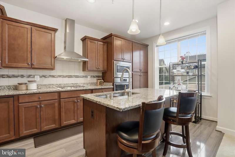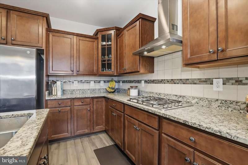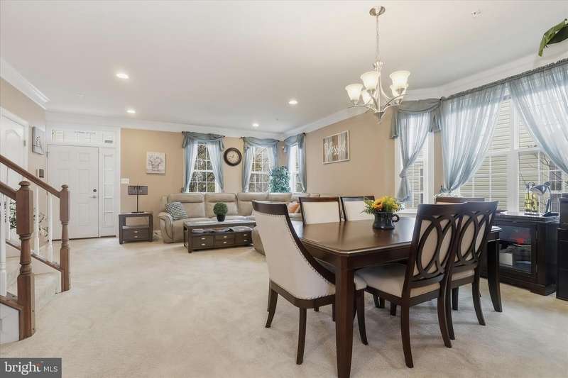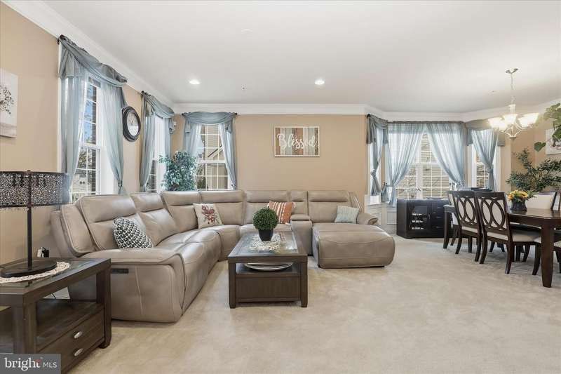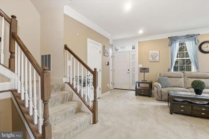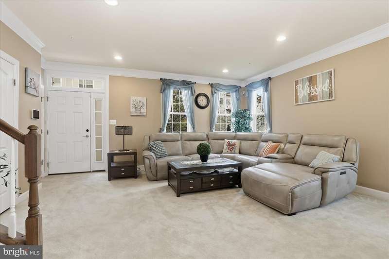 Discover timeless charm and modern comfort in this stately brick-front end-unit townhome, nestled along nostalgic tree-lined streets with classic sidewalks and lampposts. Step inside to an expansive, light-drenched open floor plan featuring a large living room with soaring ceilings and extra-wide crown molding. The elegant dining area is beautifully appointed with box molding and a chair rail, creating an ideal setting for gatherings. The upgraded chef's kitchen anchors the back of the main level with 42-inch cabinetry, a glass front display cabinet, stainless steel appliances, granite countertops, a double sink, and a central island with breakfast bar. Recessed lighting throughout the first floor enhances the inviting ambiance. Adjacent to the kitchen, a cozy family room with a ceiling fan opens to a spacious deck, perfect for outdoor entertaining. A grand staircase leads to the upper level, where the luxurious primary suite awaits. Enjoy vaulted ceilings, a large walk-in closet, and a spa-inspired bathroom complete with a jetted soaking tub and separate shower. Two additional generously sized bedrooms share a well-appointed full hall bath, and a conveniently located upper-level laundry area makes everyday living effortless. The fully finished lower level offers exceptional flexibility with a private bedroom, full bath, and a large storage closet with built-in shelving. Direct access to the oversized two-car garage adds convenience and practicality. Located in the sought-after Balk Hill community, residents enjoy access to a community center and tot lot. Ideally situated near Woodmore Town Center, restaurants, shopping, movies, grocery stores, medical offices, a Prince George's County government office building, and major commuter routes, this 4 bedroom 3.5 bath home offers the perfect blend of comfort, convenience, and community