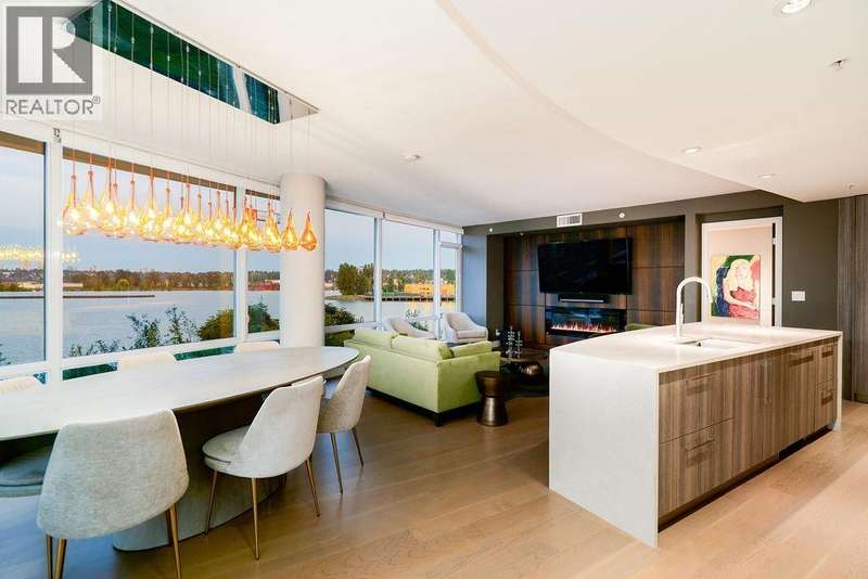 WATERFRONT HOME at one of New West's most luxurious residences, The Peninsula in Port Royal. 2 bedroom 2 bathroom corner home boasts floor to ceiling windows with expansive Fraser River sunrise and garden views from every room. In-suite storage/den, walk-in laundry room, and ample entertaining space. Open-concept chef´s kitchen with flawless quartz waterfall counters and soft-close Italian cabinetry, fully equipped with premium Gaggenau appliances. The primary bedroom offers a walk-in closet and spa-inspired ensuite with double vanities, soaker tub, separate shower and heated floors. Second bedroom with built in murphy bed! Geothermal heating and AC, engineered hardwood floors. Ideally located minutes from Hwy 91, Marine Dr, Queensborough Landing, waterfront trails, parks and transit. The best amenities in the city! 2 parking, storage locker, pets allowed, guest suite available, fitness centre, stunning party room w/fully equipped kitchen & sundeck with hot tub! Q2Q steps away! (id:58403)