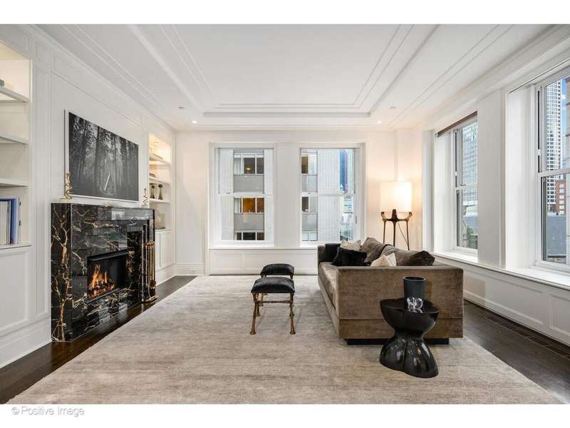 Live at the crossroads of heritage and high design in this sun-drenched southwest corner residence within the legendary Palmolive Building, one of Chicago's most iconic Art Deco masterpieces. Spanning approximately 2,400 square feet, this two-bedroom, two-and-a-half-bath home blends classic architecture with modern refinement, just steps from the elegance of Michigan Avenue. A gracious entry foyer with herringbone hardwood floors and gallery walls sets the stage for an interior that's both timeless and livable. The corner living room enjoys south and west exposures with views down Michigan Avenue. A marble-framed gas fireplace, and custom built-ins provides an inviting space that balances grandeur and comfort. The dining area, anchored by a Lindsey Adelman statement fixture, is framed by expansive west-facing windows and offers the perfect setting for intimate gatherings or elegant entertaining. The open chef's kitchen combines style and performance with Varenna cabinetry, granite countertops, Sub-Zero, Wolf, and Miele appliances, and breakfast bar. A powder room with Kallista fixtures, Jonathan Browning sconces, and limestone flooring complements the main living area with understated elegance. The primary suite is a serene retreat featuring corner exposures, abundant sunlight, and two custom walk-in closets. The ensuite bath showcases a soaking tub, separate shower, dual vanity, and limestone finishes throughout. A spacious second bedroom suite with a limestone bath and generous storage provides versatility for guests or a study. Additional features include a full-size laundry room with new (2024) Electrolux washer/dryer, sink, and cabinetry. Residents of the Palmolive enjoy five-star amenities, including 24-hour door staff, on-site management and engineer, a state-of-the-art fitness center with steam room, and the private Beacon Club for entertaining. One valet parking space in the attached garage is included. Located just moments from Michigan Avenue's premier shopping, dining, and cultural landmarks, this home offers a rare opportunity to live within one of Chicago's most prestigious addresses, a residence that is both an architectural icon and a timeless sanctuary.