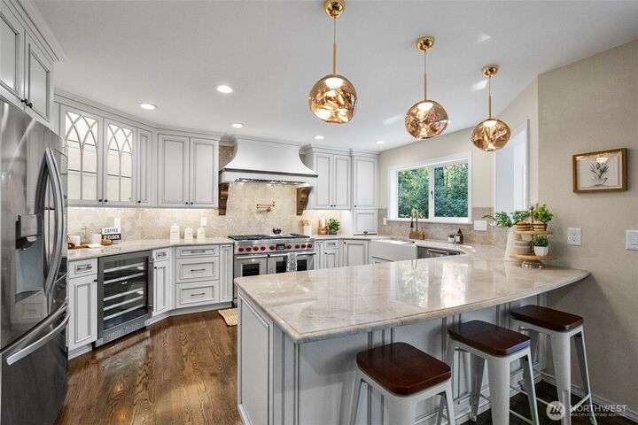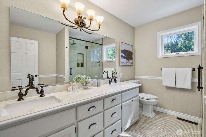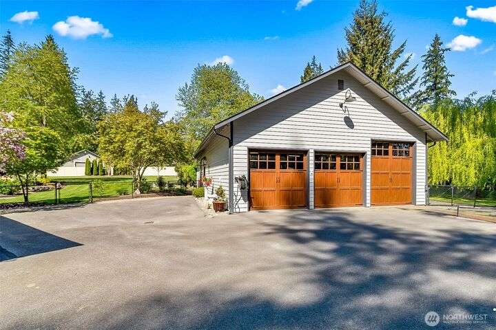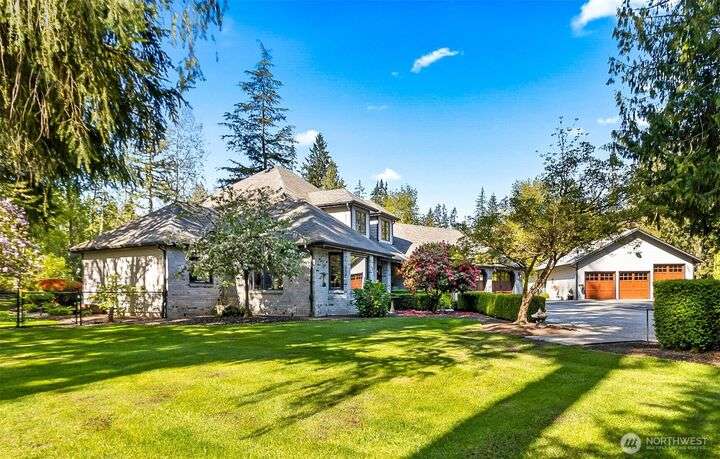 Paradise found! 2+ manicured acres at end of private cul-de-sac, close to Echo Falls County Club & includes separate heated 1,600 sf shop! Over $1M in RENOVATIONS & UPGRADES within the last 7 years. Wolf appliances in new kitchen, custom backlit Italian onyx in new primary bath, designer fixtures and custom stairs – so much more. MAIN FLOOR PRIMARY SUITE, large sport court, fruit trees, berry bushes, chicken coop w/ covered run and back yard is fully fenced for dogs. Custom paver double driveway - attached 3- car garage w/ EV charger – additional 5 car parking with RV space in shop! Stunning Low voltage lighting in front and back - spectacular at night. Storage galore – Rare find close to Woodinville and SR 522.