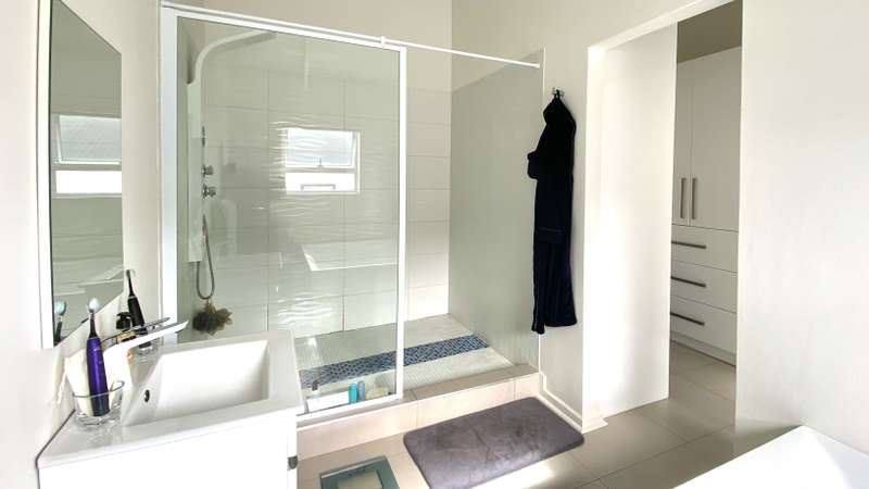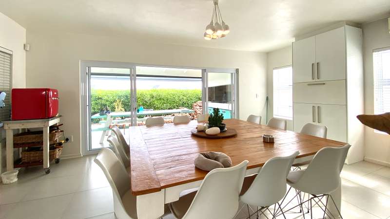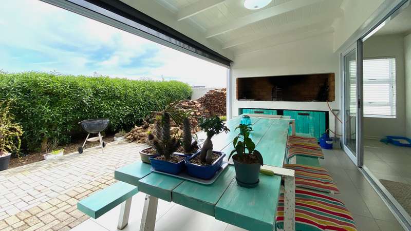 Nestled in Dolfynstrand, Dwarskersbos, this spacious family home is perfect for entertaining. The property features two fully automated double garages, with plenty of additional parking in the driveway. Upon entering, you'll be greeted by a cozy private swimming pool before stepping into the main living area. The open-plan design connects the lounge, a dining room and a modern kitchen, a seamless flow. Unique additions like a separate scullery and a spacious wine cellar add a touch of luxury. The dining room opens onto a covered patio with a built-in braai and a separate games room, making it an entertainer's dream. The ground floor includes a large guest room with an ensuite bathroom, as well as a guest toilet and a spacious study that provides direct access to one of the garages. Upstairs, the home offers three more bedrooms. The main bedroom is a true retreat, with a spectacular view and a glimpse of the ocean. It features a walk-in closet and a full ensuite bathroom. The two additional bedrooms each have their own ensuite bathroom and built-in cupboards. The property also comes with a 200 liter Solar Geyser, as well as 8 Solar Panels, 5kW Inverter and 10kW Backup Battery for massive saving on the electricity bill. This beautiful home is a must-see. Contact us today to arrange a viewing!