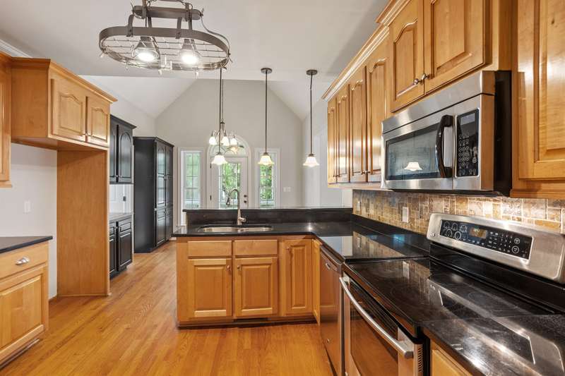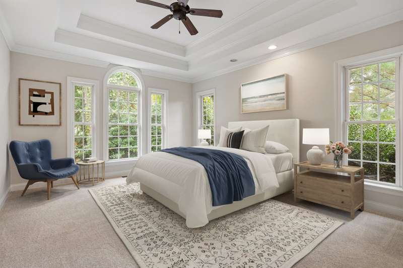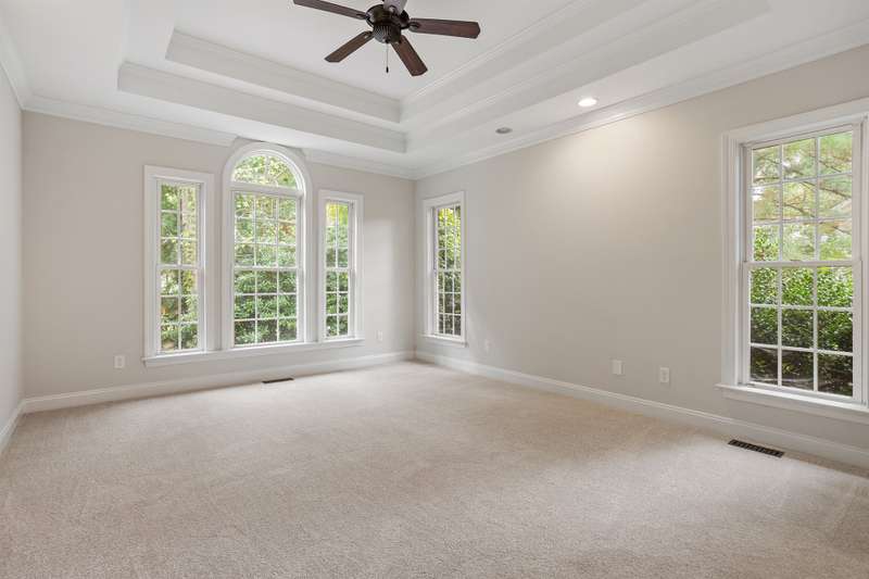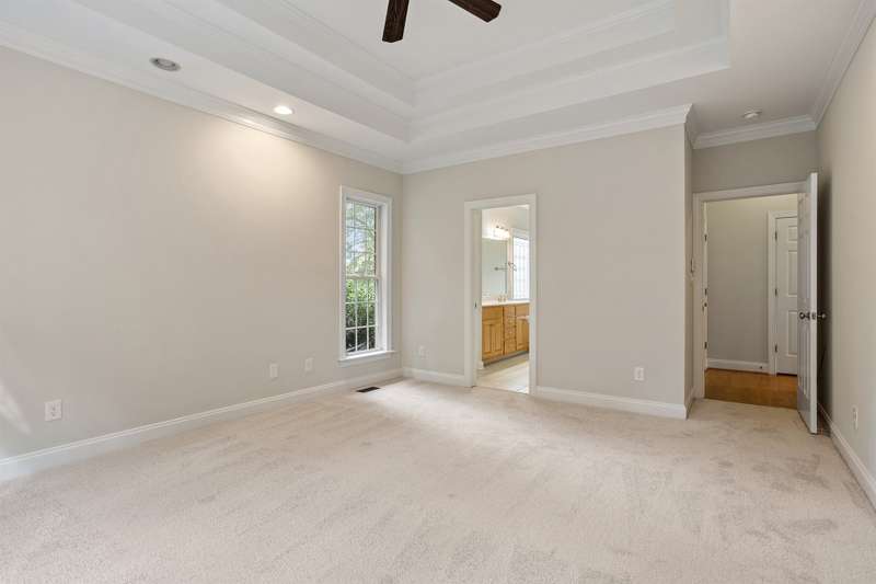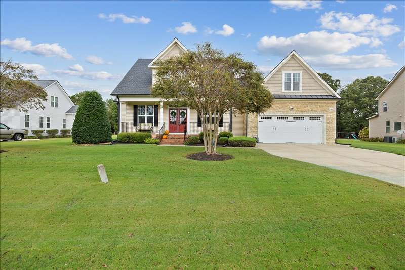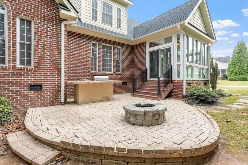 Welcome to 400 Charleston, a 3000+SF custom brick home in the vibrant Riverwood Athletic Club Community! Beautiful corner lot with private backyard /patio. 4 bedrooms /3 full baths. Luxurious primary suite on the main /lower level with double-tray ceiling, walk-in closet, and expansive bath featuring dual vanity, jetted tub, and separate shower. One secondary bedroom on main floor, and two on upper level. Kitchen has SS appliances, pantry, and opens to breakfast area with cathedral ceiling. Living Room with gas log fireplace, two-story ceiling, built-in shelves. Large formal dining room with hardwoods. Study on main level has hardwoods, French doors for privacy, and large bay window. The four season room connects to the backyard patio which has built-in grilling station and fire pit - perfect for entertaining. 2-car garage. Finished bonus room on upper level. Walk-in attic storage. Proximity to Neuse River Greenway, downtown Clayton, and easy commute to Raleigh. NEW ROOF with architectural shingles, NEW PAINT, and NEW CARPET. Move-in ready! (Some images virtually staged.)