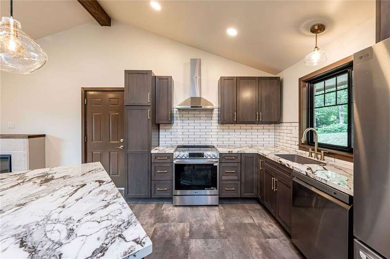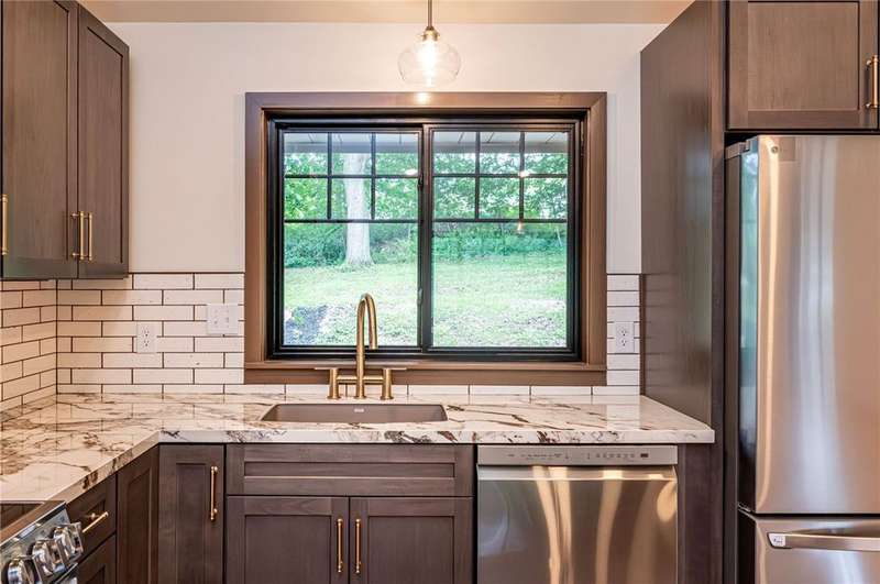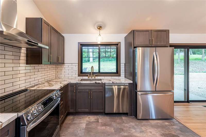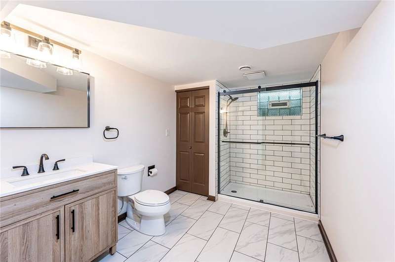 Fabulous 3 bedroom Craftsman's style ranch with 2 car attached garage. Hard to find one level living. Completely renovated! Brand new beautiful Chef's kitchen with LG appliances with French door refrigerator, drawer microwave oven, stove, dishwasher, soft close drawers, granite counters, undermount sink. pantry & lazy susan. Large kitchen island with seating for 4. Living room with large picture windows and fireplace. Open floor plan. Sliding glass door off kitchen leads to patio. The bathroom has double bowl sink, tub shower combo with handheld sprayer. The vanity has soft close drawers and double medicine cabinets. First floor laundry. New roof, furnace, air conditioning. Finished lower level that features a kitchenette with a mini refrigerator, sink and built in cabinets. guest bedroom, large bathroom and huge storage area. There is additional set of laundry hook ups in the L/L. Private back yard. Shed. Franklin Regional schools. Convenient to Route 22 , 66 , shopping & dining.