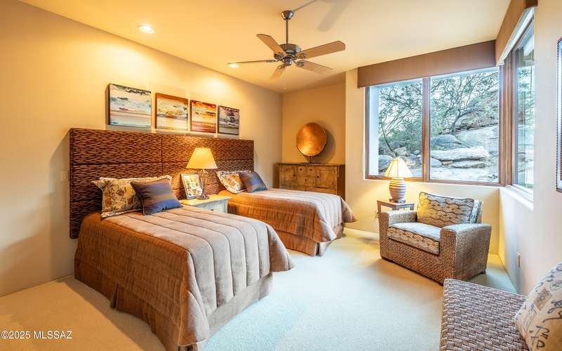 We invite you to view this exquisite custom Robinette Design masterpiece-solid construction. The finest of workmanship/finishes. Elevated corner lot boasts outstanding backyard views to the SW - beautiful Marana city lights, mesmerizing sunsets, late morning sunrises & endless canyon views. Nestled perfectly into the rocks of the Tortolita Mountains - a private balcony of relaxation & endless views. Very well maintained home: roof sealed/coated in May 2024, totally new irrigation landscape lines installed 2022, new washer & dryer in 2024, new gas cooktop, wall-oven, wall microwave, warming drawer in 2022. This residence promises to redefine your concept of comfortable luxury living, offering an exquisite blend of luxury, elegance, sophistication & artistic architectural craftsmanship.